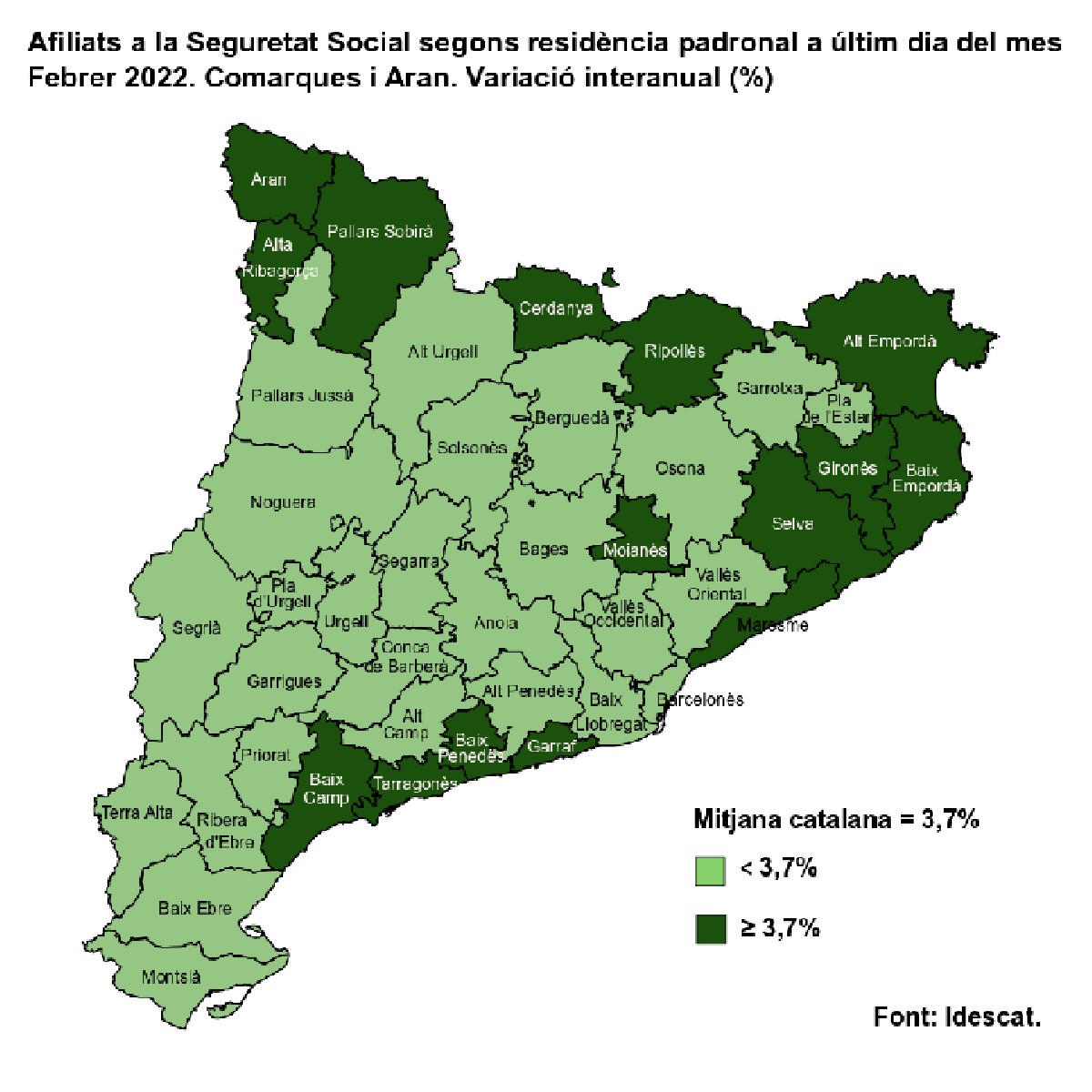 Els afiliats a la Seguretat Social augmenten a totes les comarques al febrer, en relació amb l'any anterior. A la comarca de la Noguera s'ha incrementat un 2,7% respecte a les xifres de fa un any i un 0.2% respecte al mes de gener