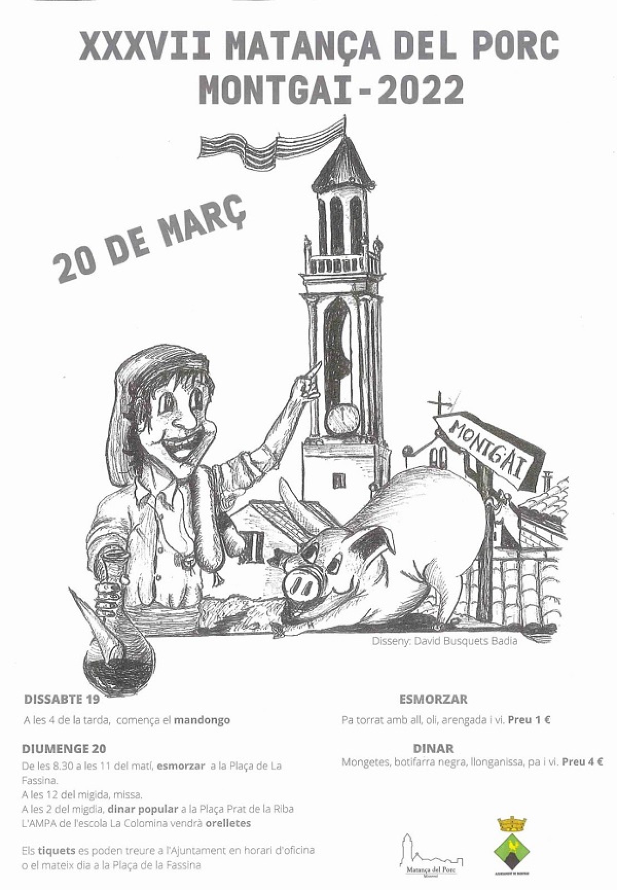 Montgai celebrarà la XXXVII edició de la tradicional Matança del Porc el proper cap de setmana. El dissabte a la tarda es farà el Mandongo i el diumenge la tradicional festa, amb l'esmorzar i dinar popular