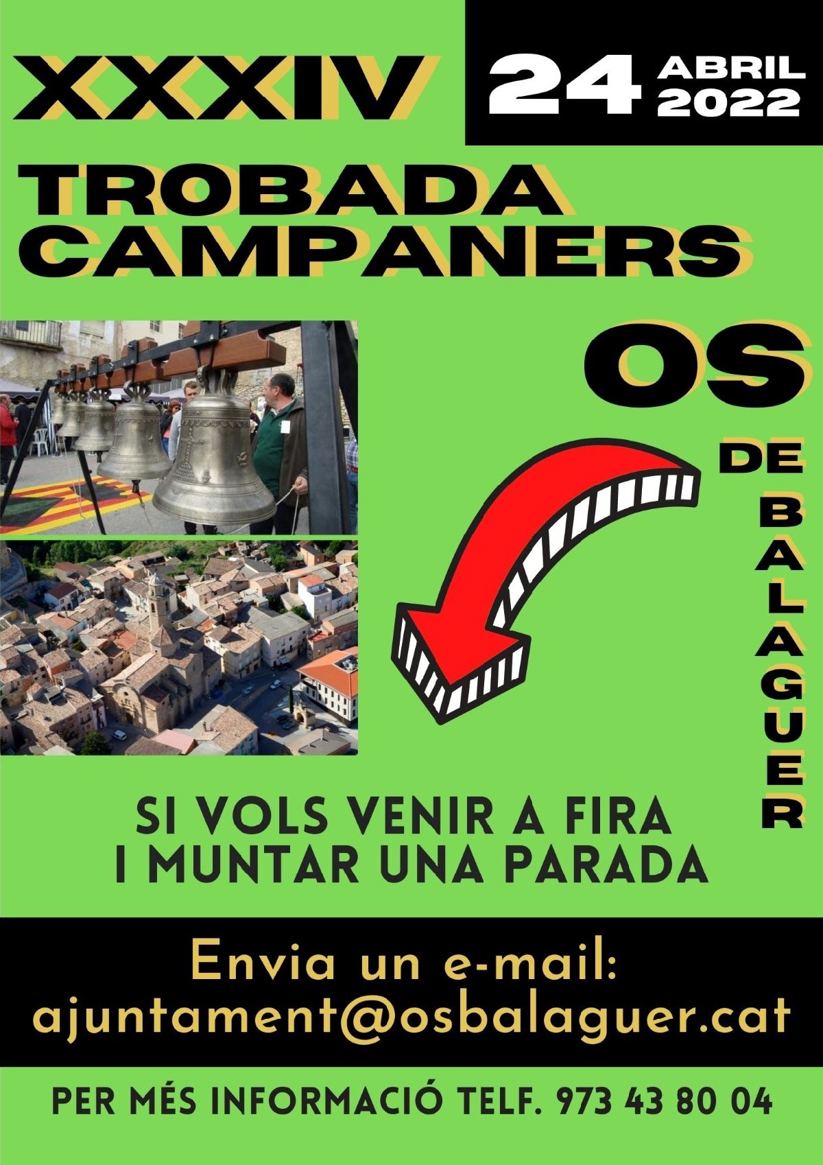 Os de Balaguer prepara la 34a Trobada de campaners, que tindrà el seu màxim exponent el diumenge 24 d'abril amb la celebració de la 23a Fira de la Campana. S'ha obert el termini per reservar espai per muntar una parada