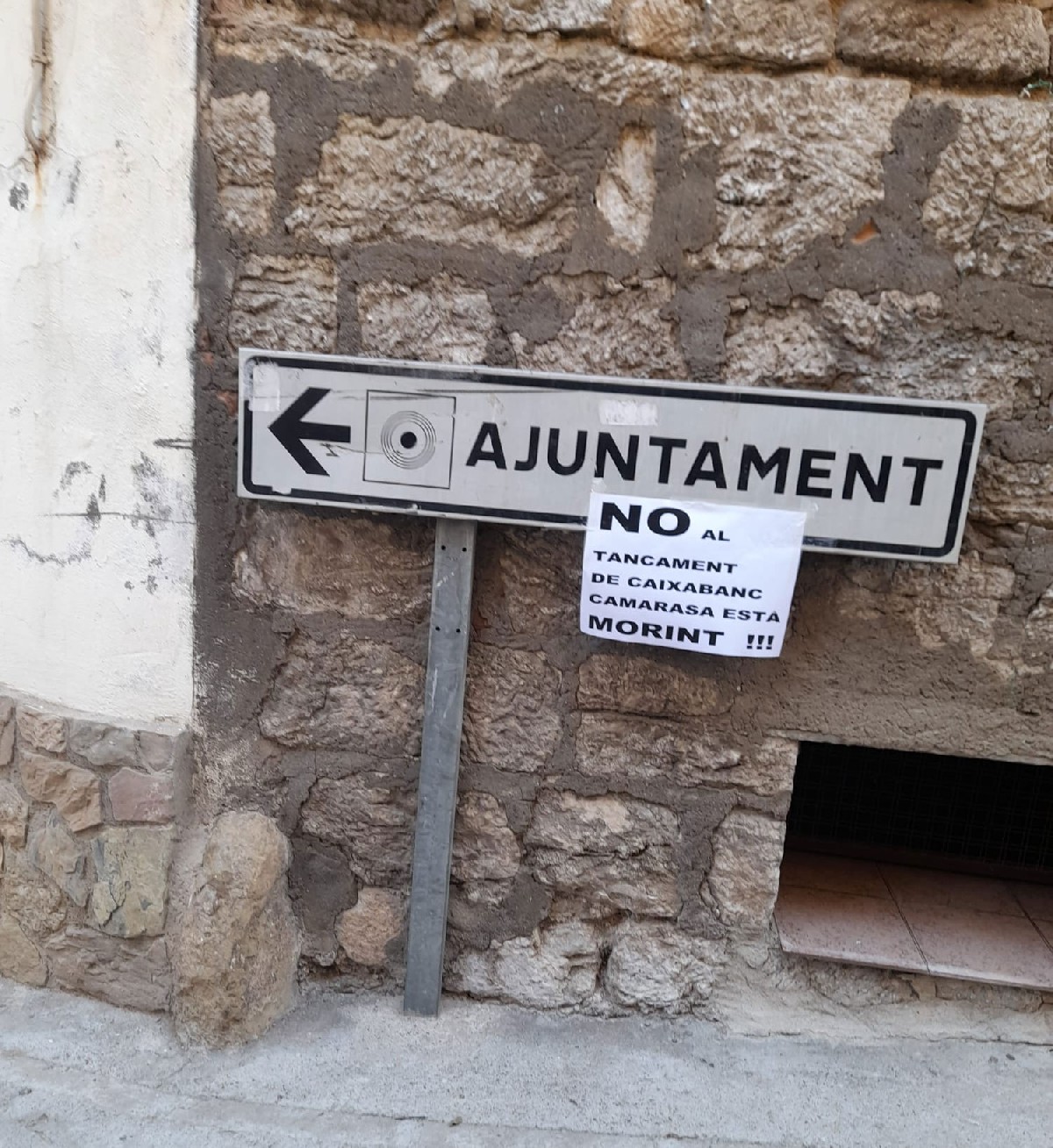 Els veïns de Camarasa han expressat noves queixes pel tancament de la sucursal a Camarasa. Han penjat noves pancartes al centre de la localitat per reclamar a CaixaBank que mantingui oberta més hores a la setmana l'única sucursal bancària del poble