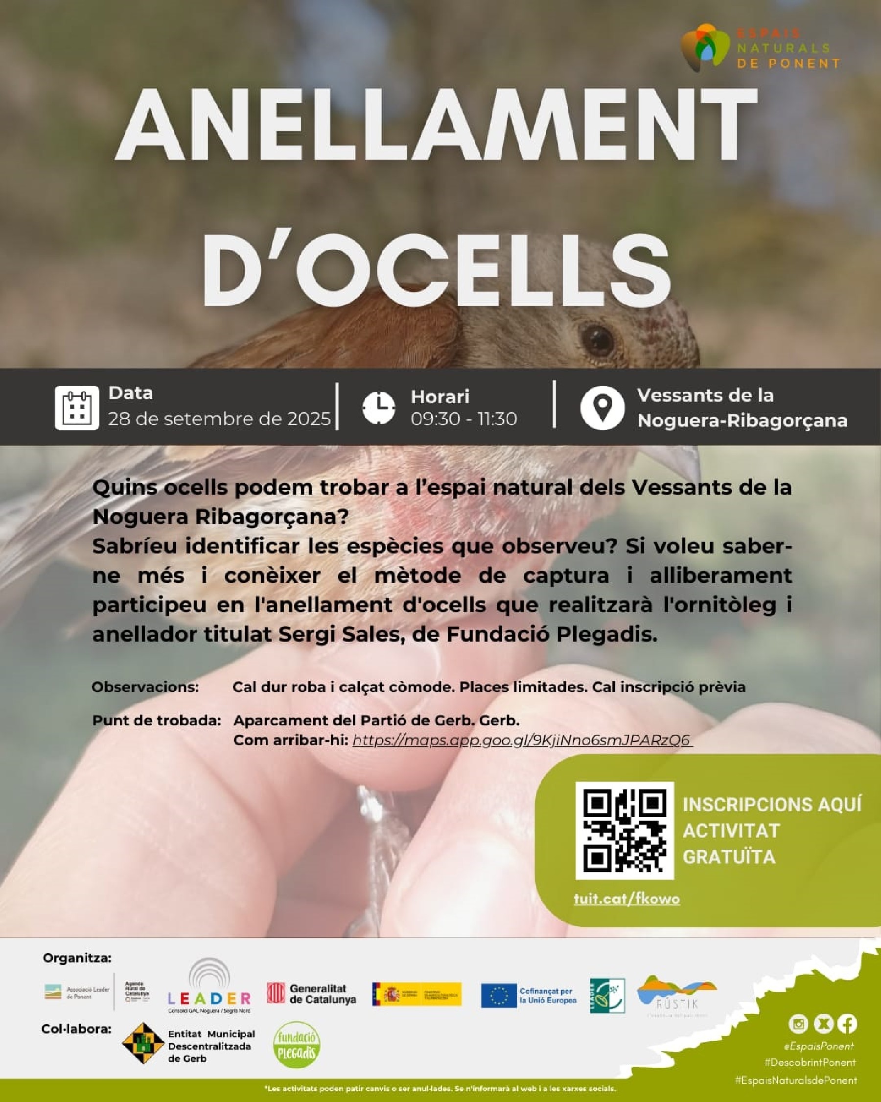 Anellament d'ocells aquest diumenge als Vessants de la Noguera Ribagorçana amb l'ornitòleg Sergi Sales