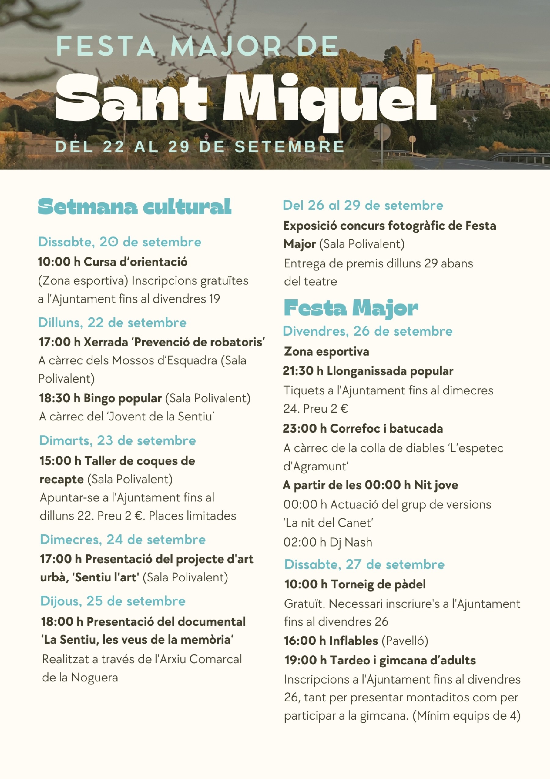 La Sentiu celebra la Festa Major de Sant Miquel del 22 al 29 de setembre amb activitats culturals, esportives i musicals