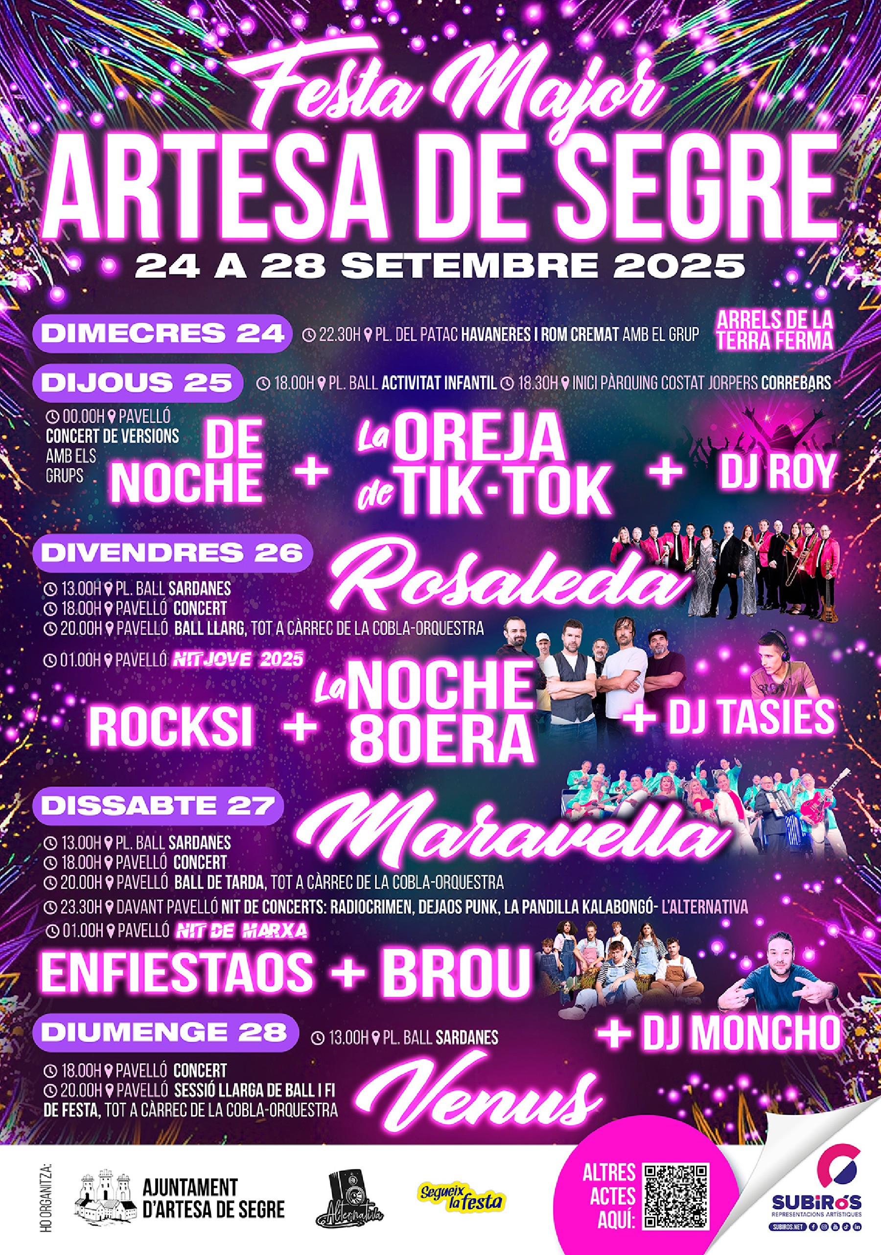 Artesa de Segre celebrarà del 24 al 28 de setembre la seva Festa Major, amb una programació variada que combina música, tradició, activitats infantils i nits de concerts
