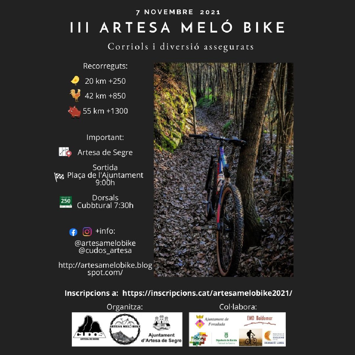Artesa acollirà el 7 de novembre la 3a edició de la Meló Bike, una prova de btt amb 3 distàncies de 20, 42 i 55km. Les inscripcions estan limitades a 300 participants