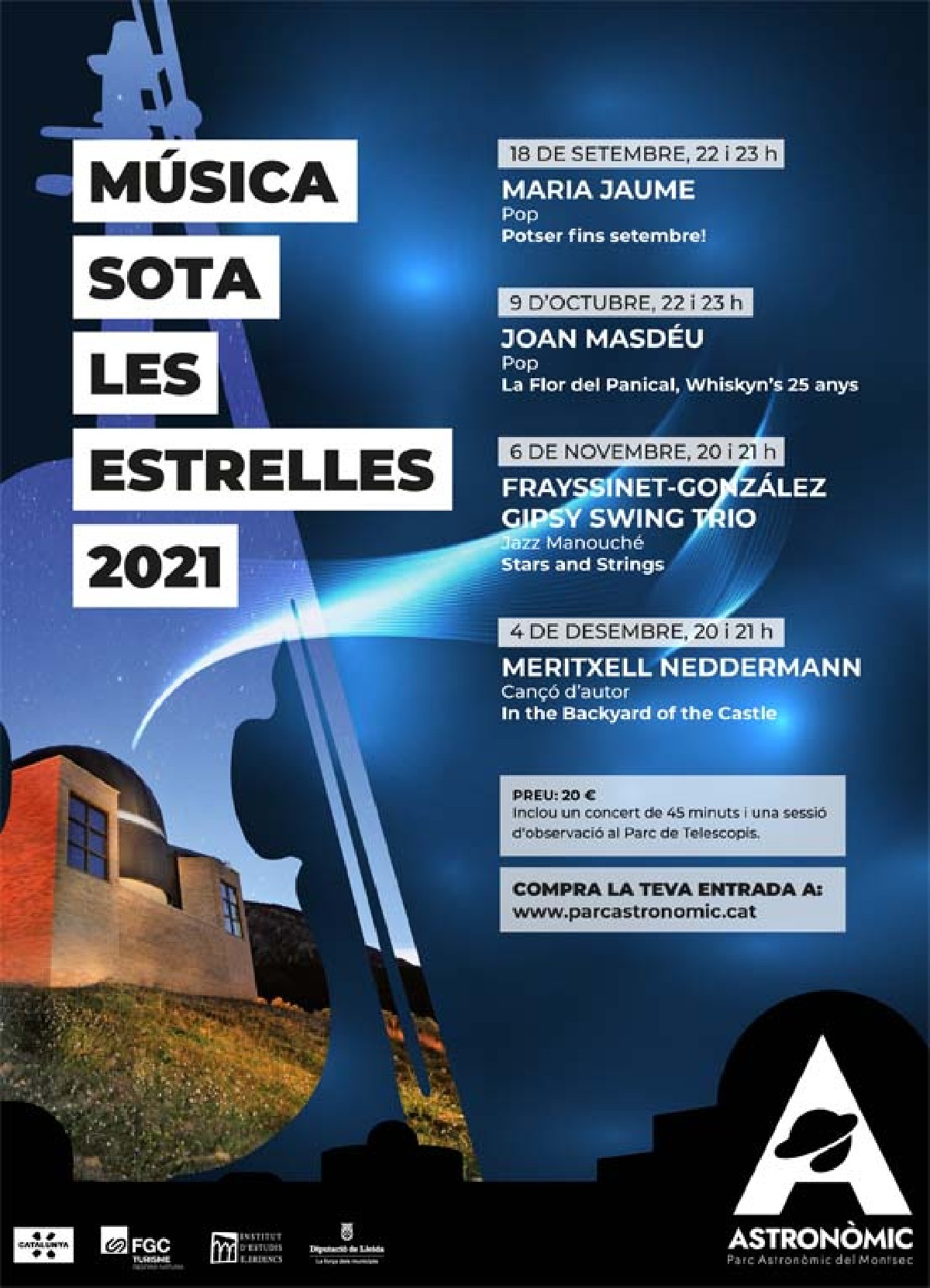 El Parc Astronomic del Montsec celebra aquest dissabte un nou concert del cicle 'Música sota les estrelles'. S'hi podrà escoltar la sonoritat pop del cantautor Joan Masdéu