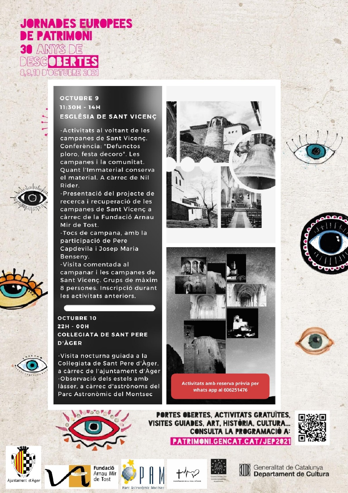 La Col·legiata de Sant Pere d'Àger i l'església de Sant Vicenç celebren les Jornades Europees de Patrimoni. Visites guiades, portes obertes i conferències els dies 9 i 10 d'octubre
