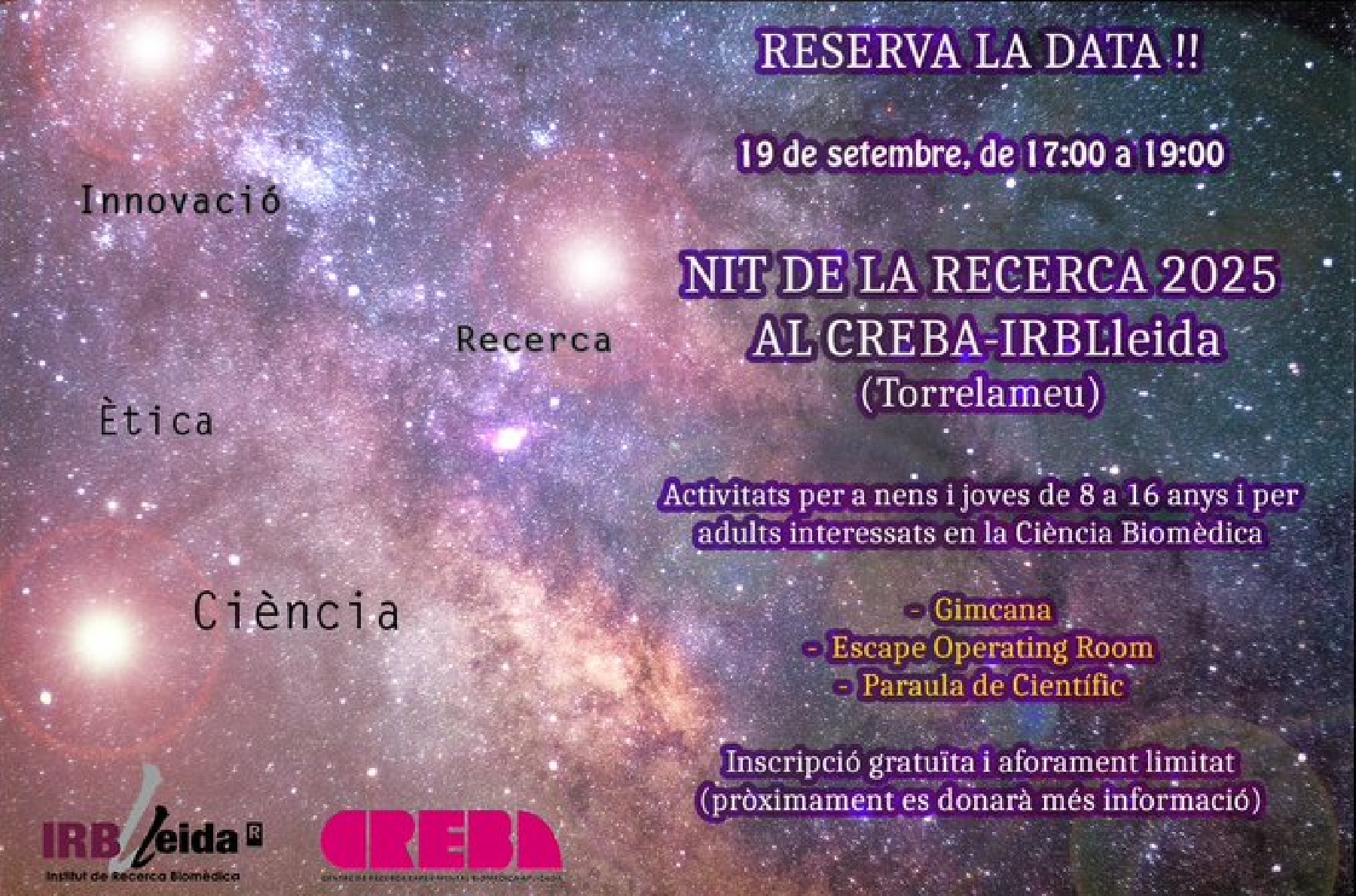 Torrelameu celebrarà el proper divendres 19 de setembre la Nit de la Recerca 2025 amb activitats divulgatives gratuïtes al CREBA