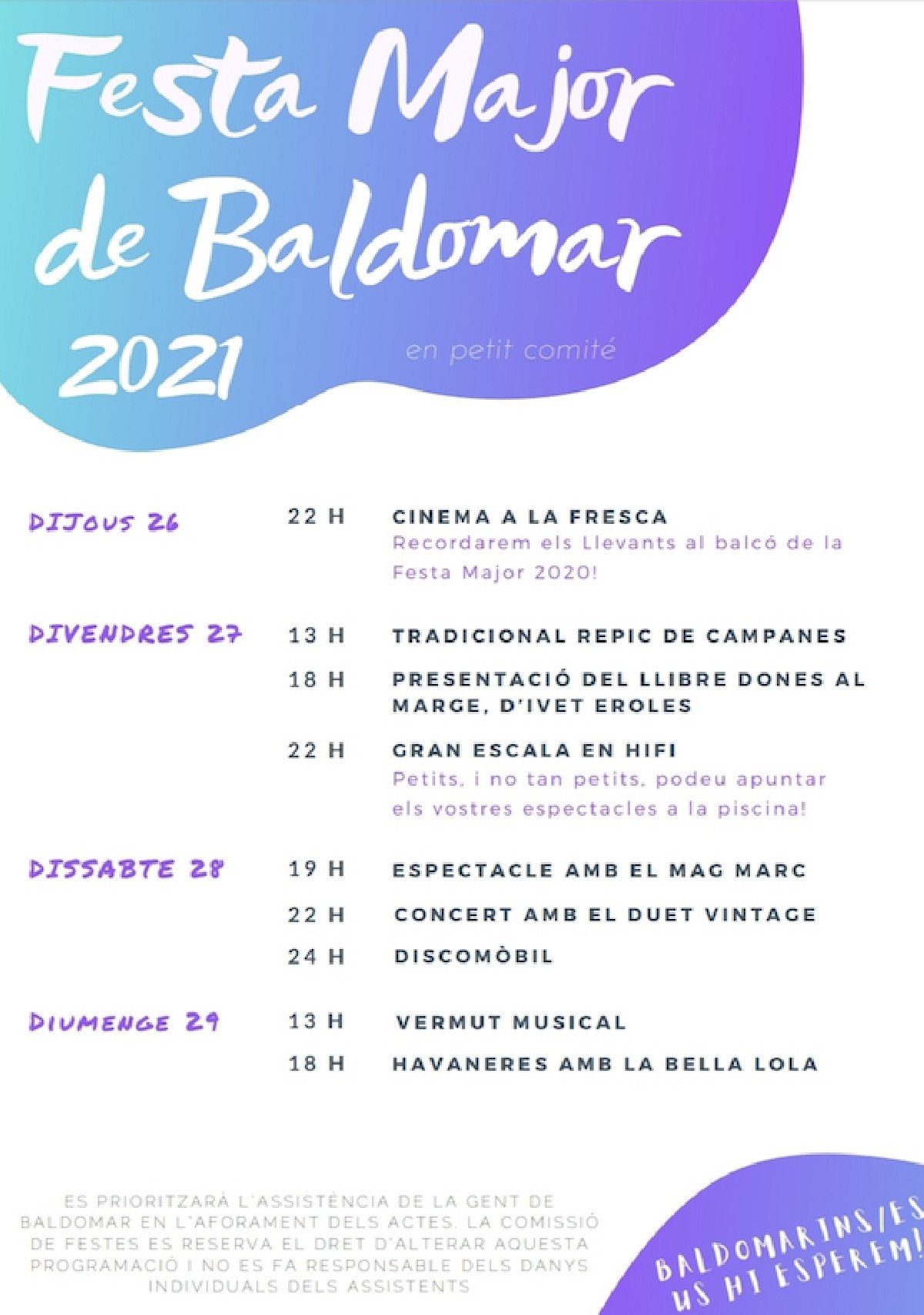 Aquest cap de setmana és Festa Major a Baldomar, nucli d'Artesa de Segre