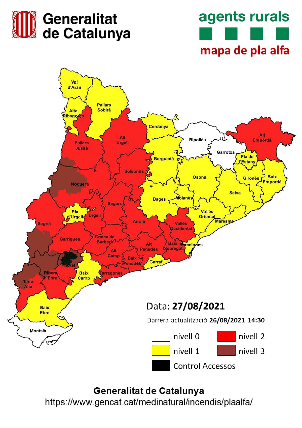 El Govern activa aquest divendres el nivell 3 del pla Alfa a 39 municipis i 7 comarques, entre aquestes la Noguera, per l'alt risc d'incendi