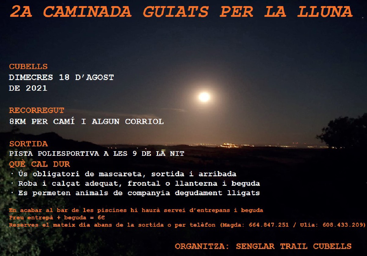 Senglar Trail Cubells organitza aquest dimecres dia 18 una caminada amb la llum de la lluna