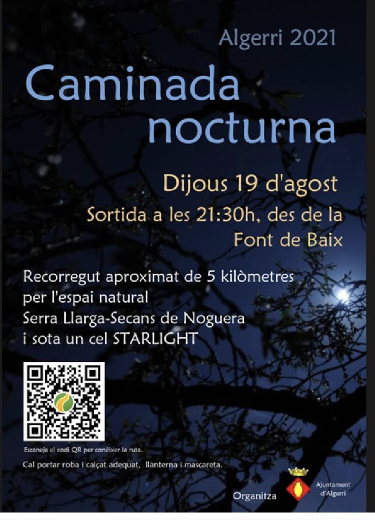 Aquest dijous Algerri organitza una caminada nocturna per observar el cel nocturn. Recorrerà uns 5 km de la Serra Llarga