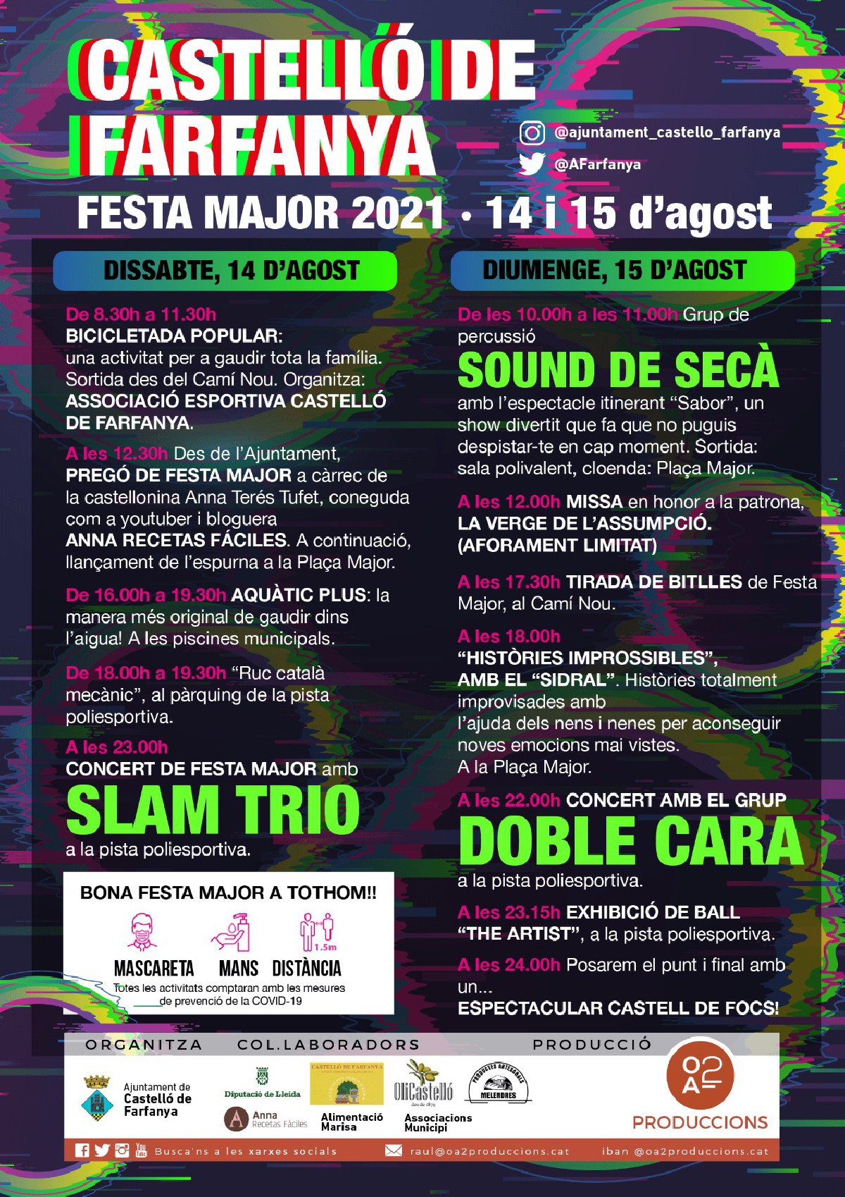 Castelló de Farfanya celebra la seva Festa Major aquest cap de setmana del 14 i 15 d'agost, amb activitats com una bicicletada, espectacles infantils i familiars, i concerts de festa a la pista poliesportiva