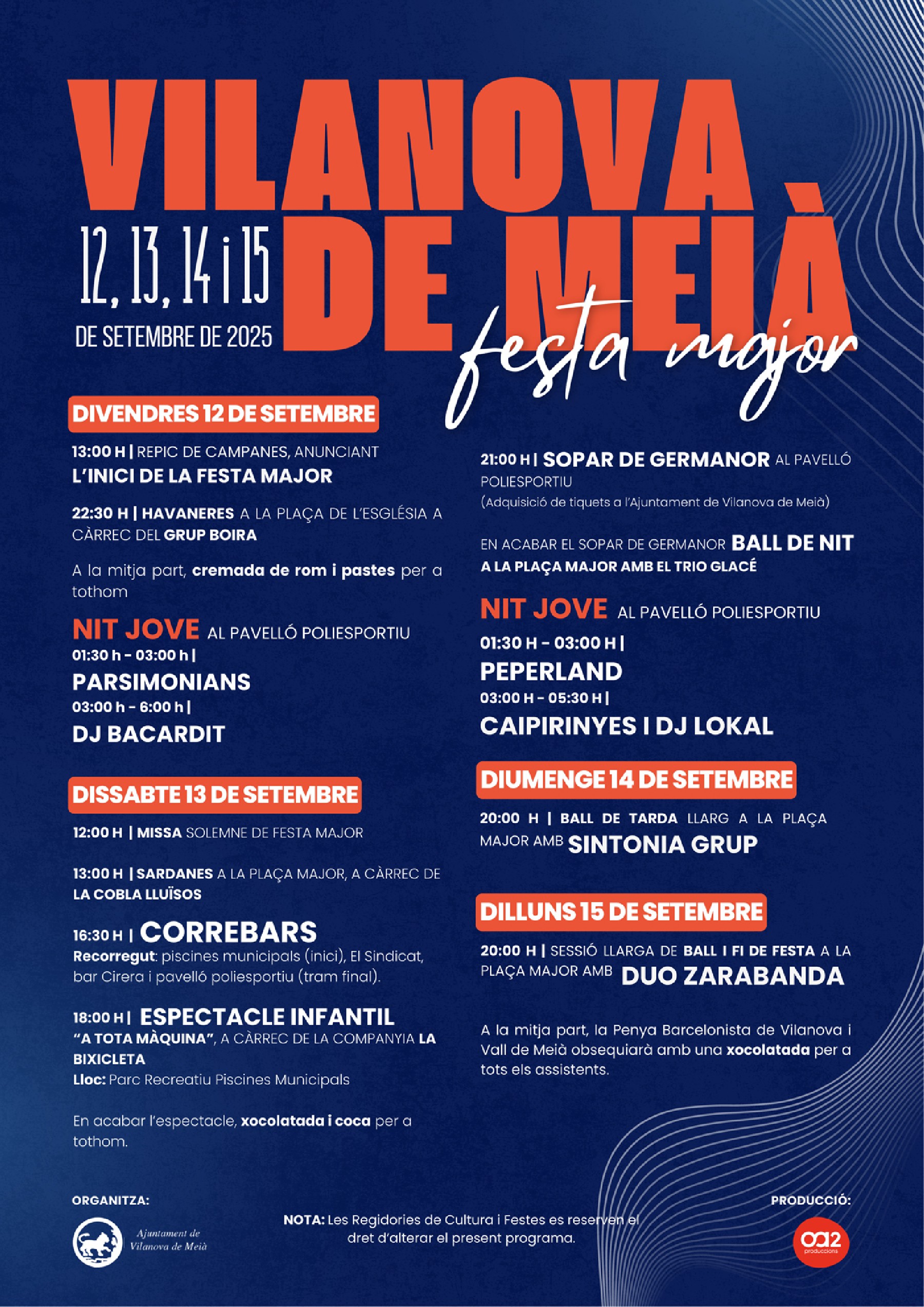 Vilanova de Meià es prepara per viure quatre dies intensos de Festa Major, del 12 al 15 de setembre, amb una programació que combina tradició, activitats familiars i molta música