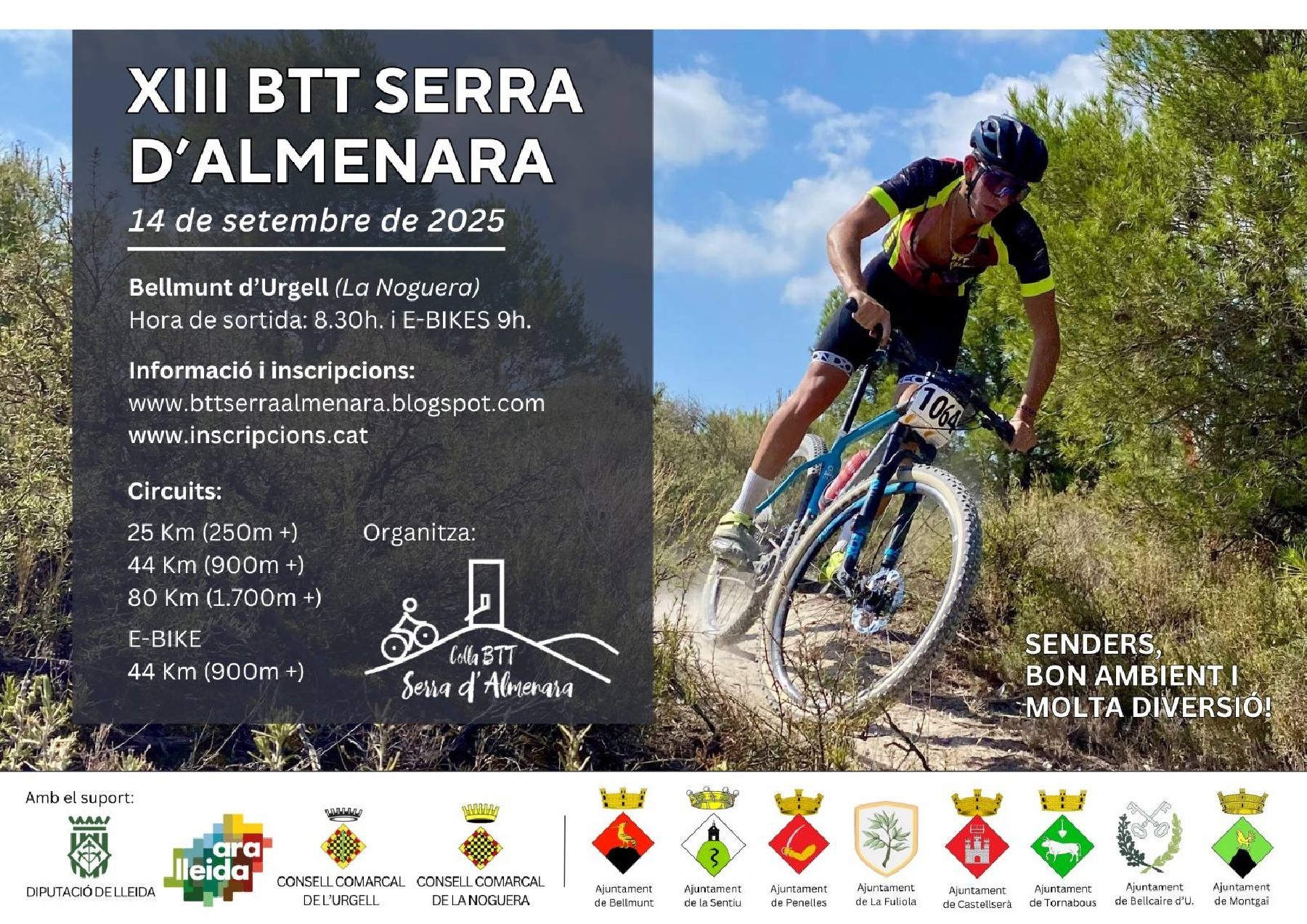 La BTT no s'atura a la Noguera i aquest diumenge hi ha una nova cita pels amants del món de la bicicleta de muntanya amb la XIII edició de la BTT Serra d'Almenara