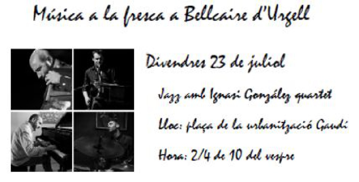 Aquest divendres a Bellcaire d'Urgell torna la música a la fresca, amb el jazz de l'Ignasi González quartet