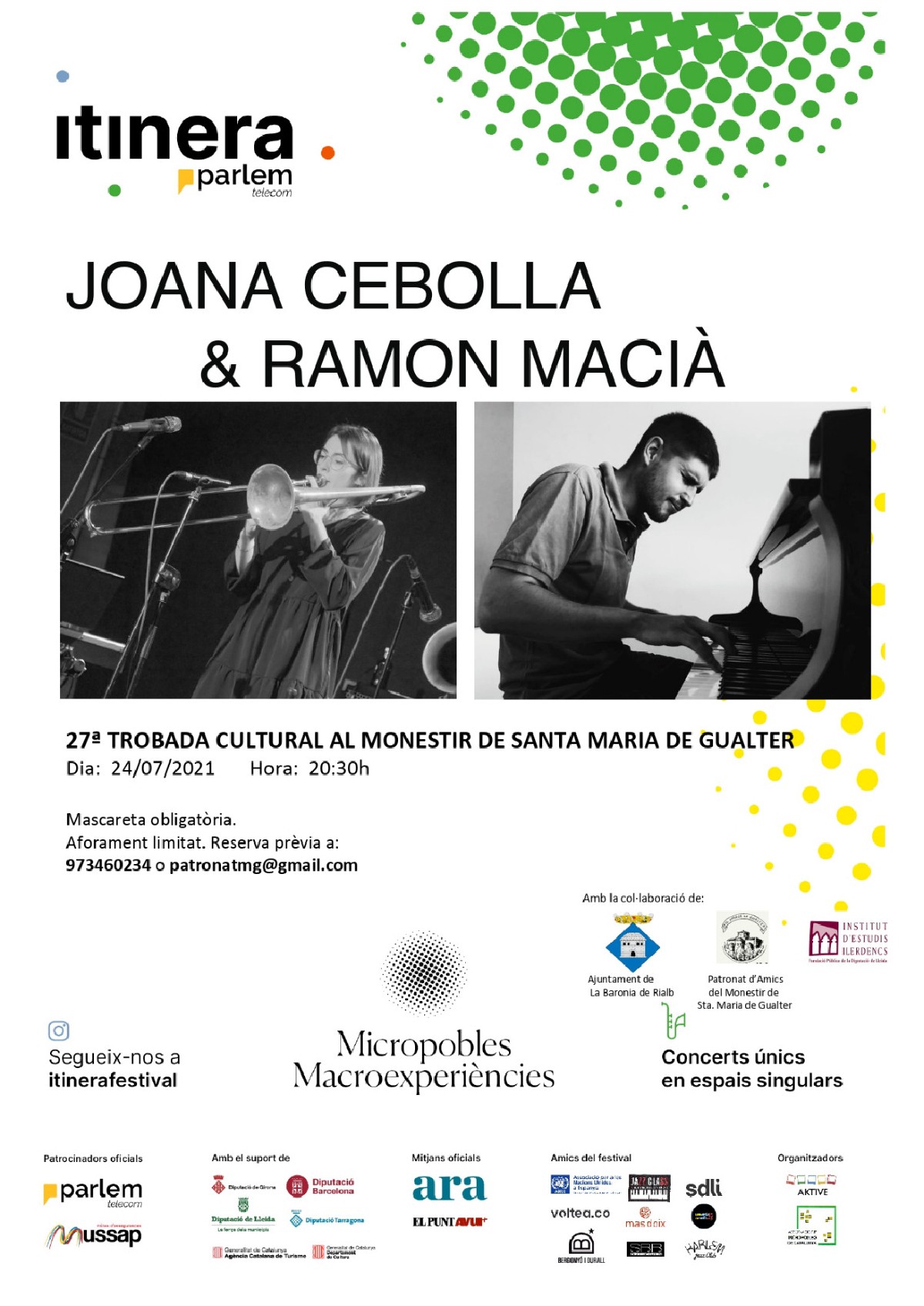 El jazz de la jove Joana Cebolla i Ramon Macià, aquest dissabte a la 27a trobada cultural al Monestir de Santa Maria de Gualter i dins de la programació del Festival Itinera