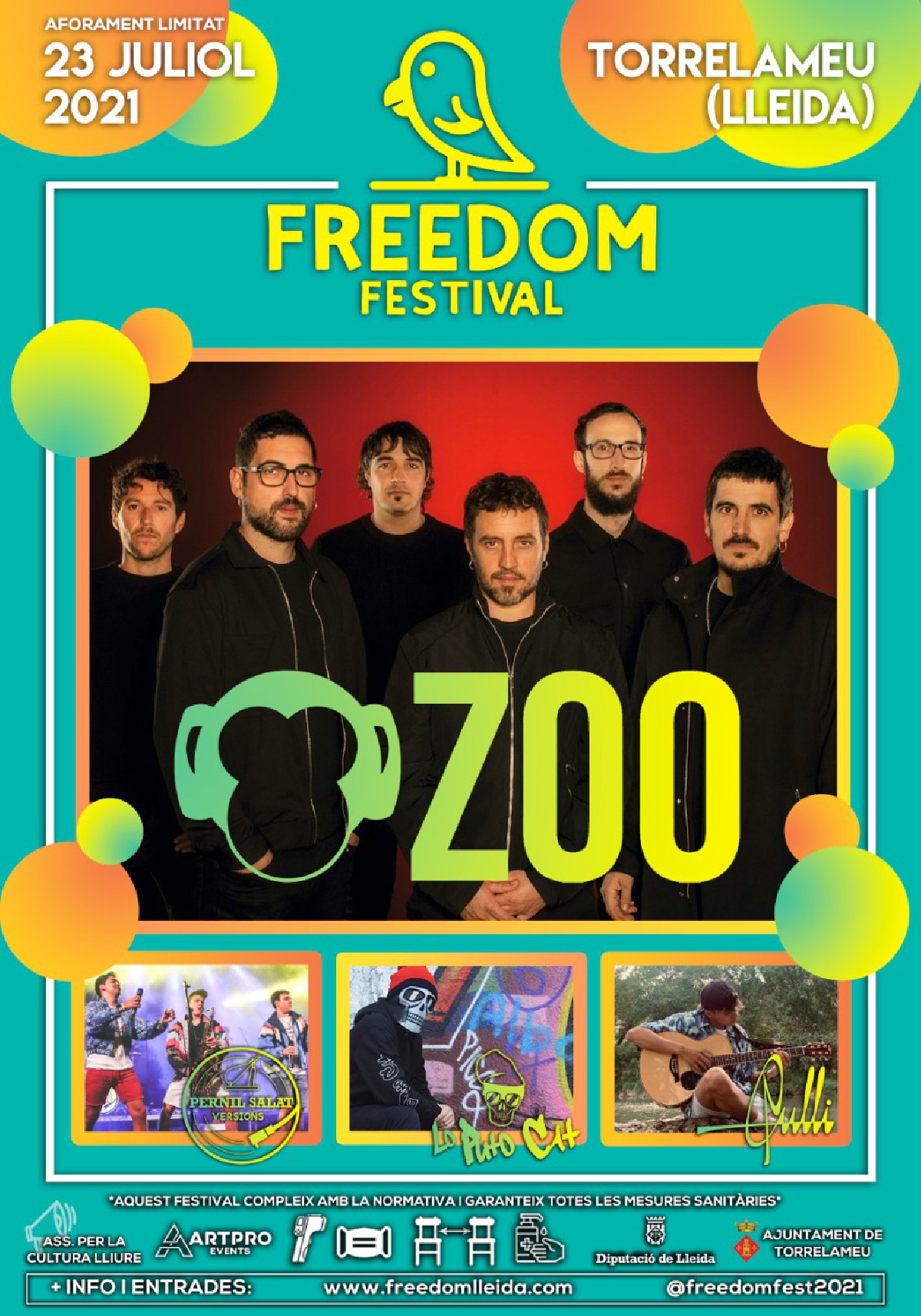 Zoo, Lo Puto Cat, Culli i Pernil salat, caps de cartell del Freedom Festival 2021 que es celebra aquest divendres a Torrelameu. Al festival hi actuaran també el cantautor balaguerí Culli que presentarà alguns dels nous temes que formaran part del seu disc