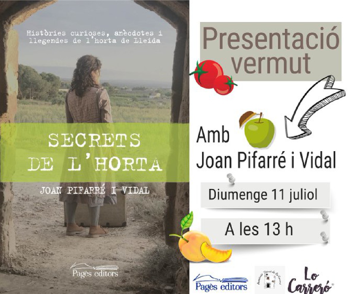 L'Espai Lo Carreró de Montgai, acollirà diumenge la presentació del llibre Secrets de l'Horta, de Joan Pifarré i vidal. Un recull de fets històrics, anècdotes i curiositats de l'horta lleidatana
