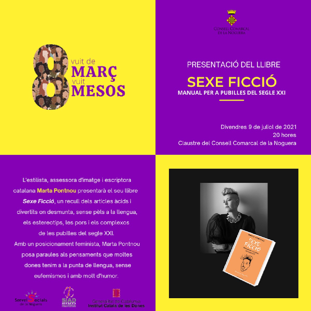 Marta Pontnou, protagonista de l'activitat del juliol de la campanya '8 de març, 8 mesos' del SIAD de la Noguera. Presentarà el seu llibre 'Sexeficció' el 9 de juliol al Consell Comarcal de la Noguera