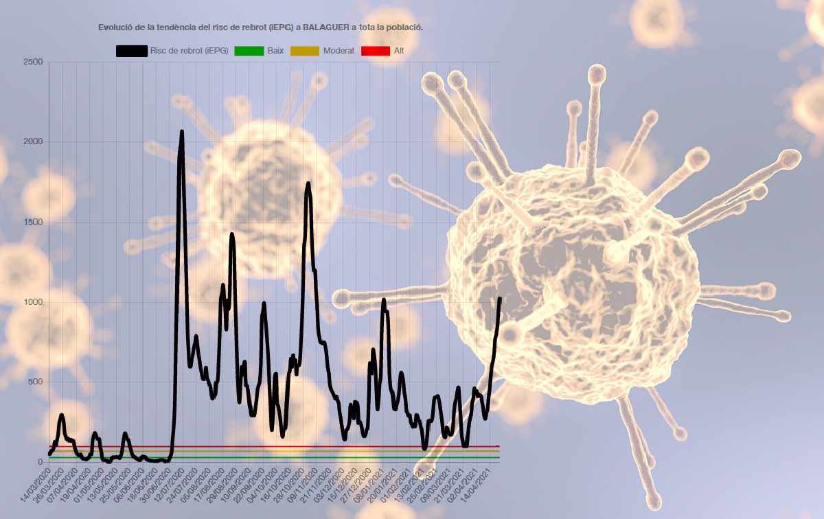 Balaguer puja 50 punts al risc de rebrot, que ja és de 1080, i també ascendeix la velocitat de contagi, amb 10 nous positius des d'ahir. La Noguera puja 22 punts i suma 24 positius. Lleida baixa, però la mitjana de Catalunya puja als indicadors