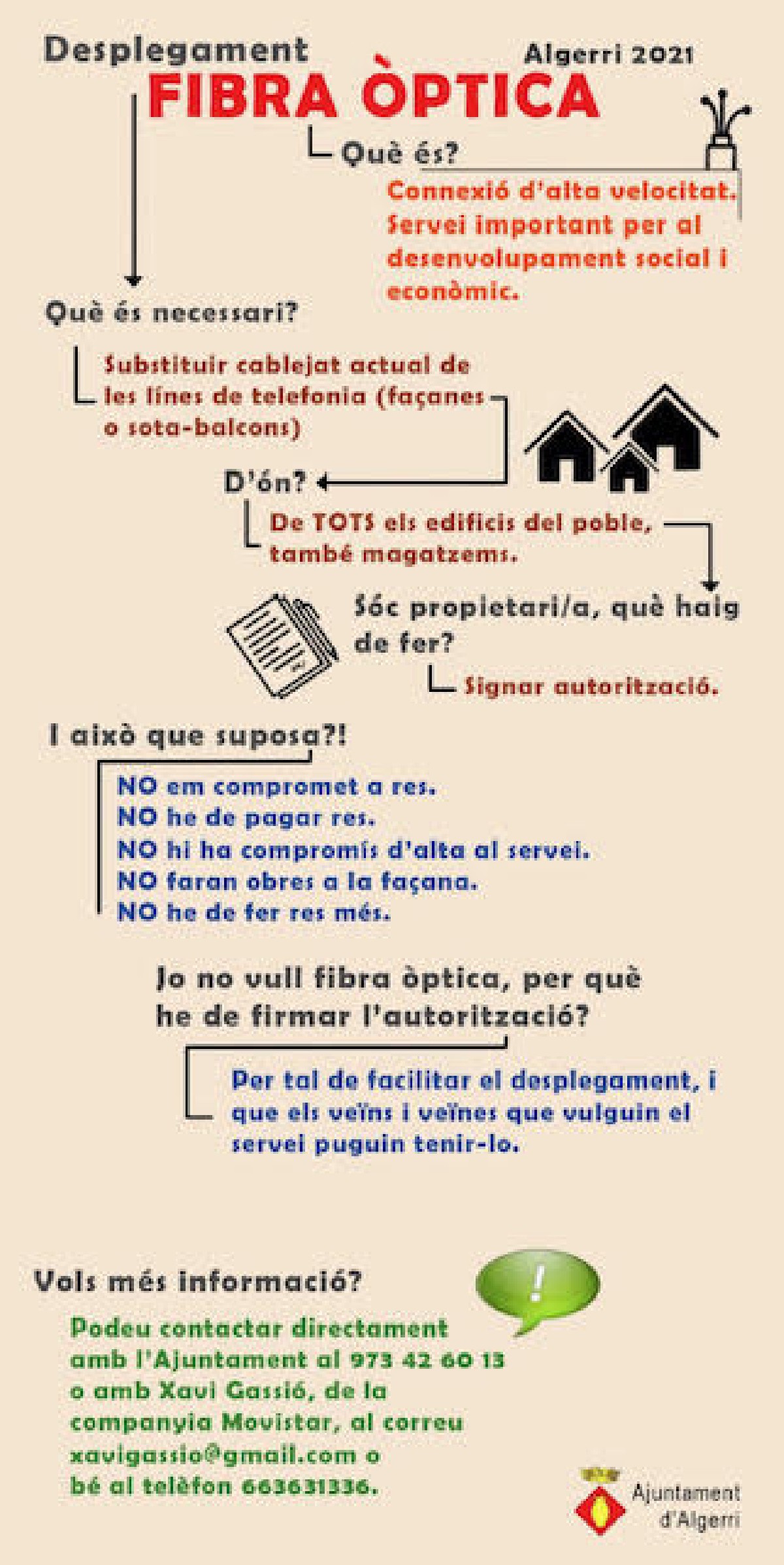 Algerri es prepara per al desplegament de la fibra òptica al municipi. Des de l'ajuntament diuen que és un projecte molt necessari i que beneficiarà tot el poble i e l seu desenvolupament social i econòmic