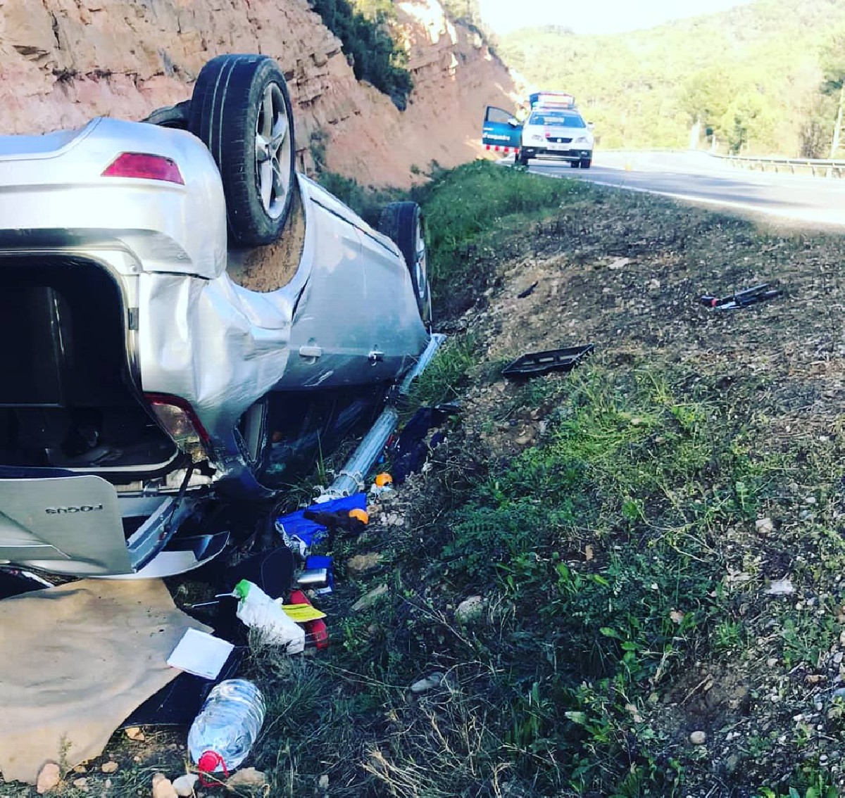 Un vehicle va bolcar aquest dimecres a la tarda en una sortida de via a la C-14, al terme de Vilanova de l'Aguda. El conductor va resultar ferit lleu
