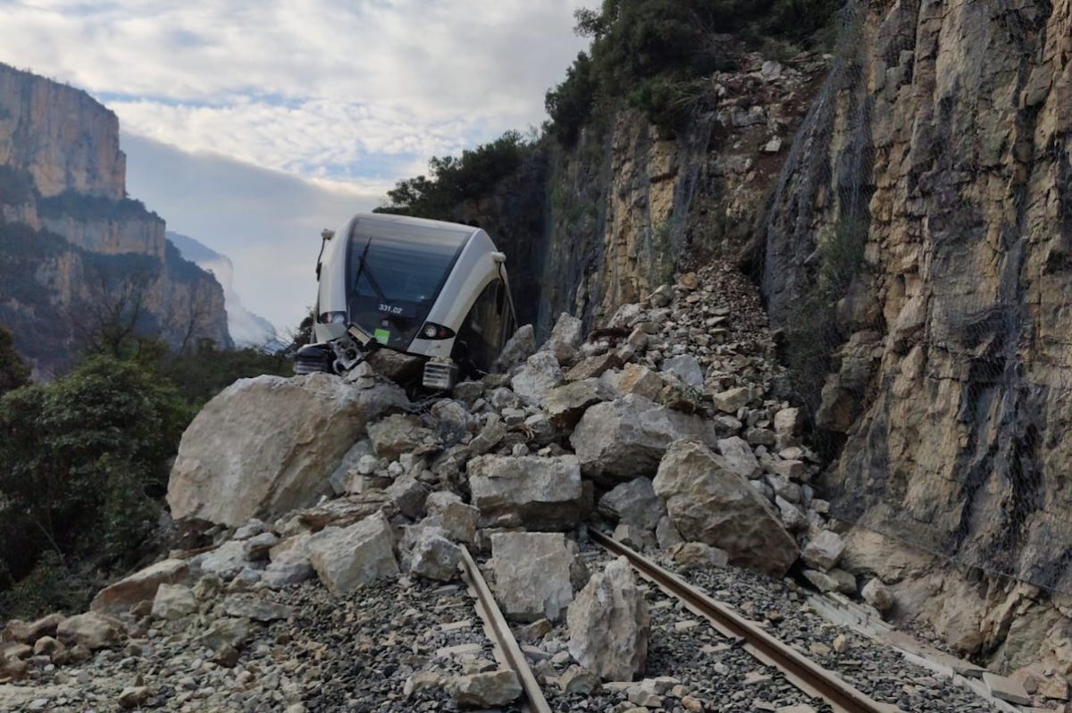 FGC inicia la protecció del tren que ha xocat contra una esllavissada de roques a la línia de la Pobla. Dissabte es començarà a estabilitzar el talús però fins dilluns no es podrà donar una estimació de la reobertura