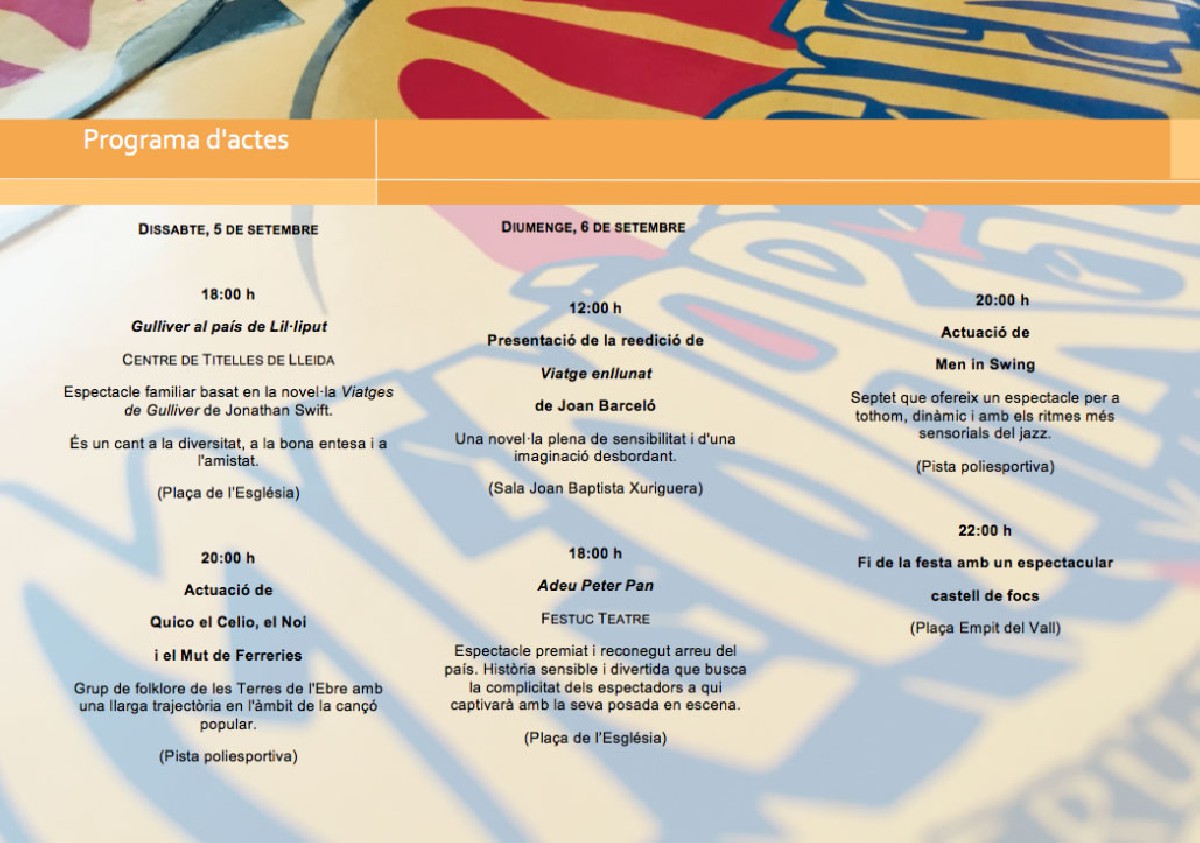 Térmens celebra del 10 al 13 de setembre la seva Festa Major amb espectacles i concerts aptes per a tots els públics als que cal inscripció prèvia. En destaca la presentació de l'obra guanyadora del 1r Àlbum Il·lustrat Vila de Térmens.