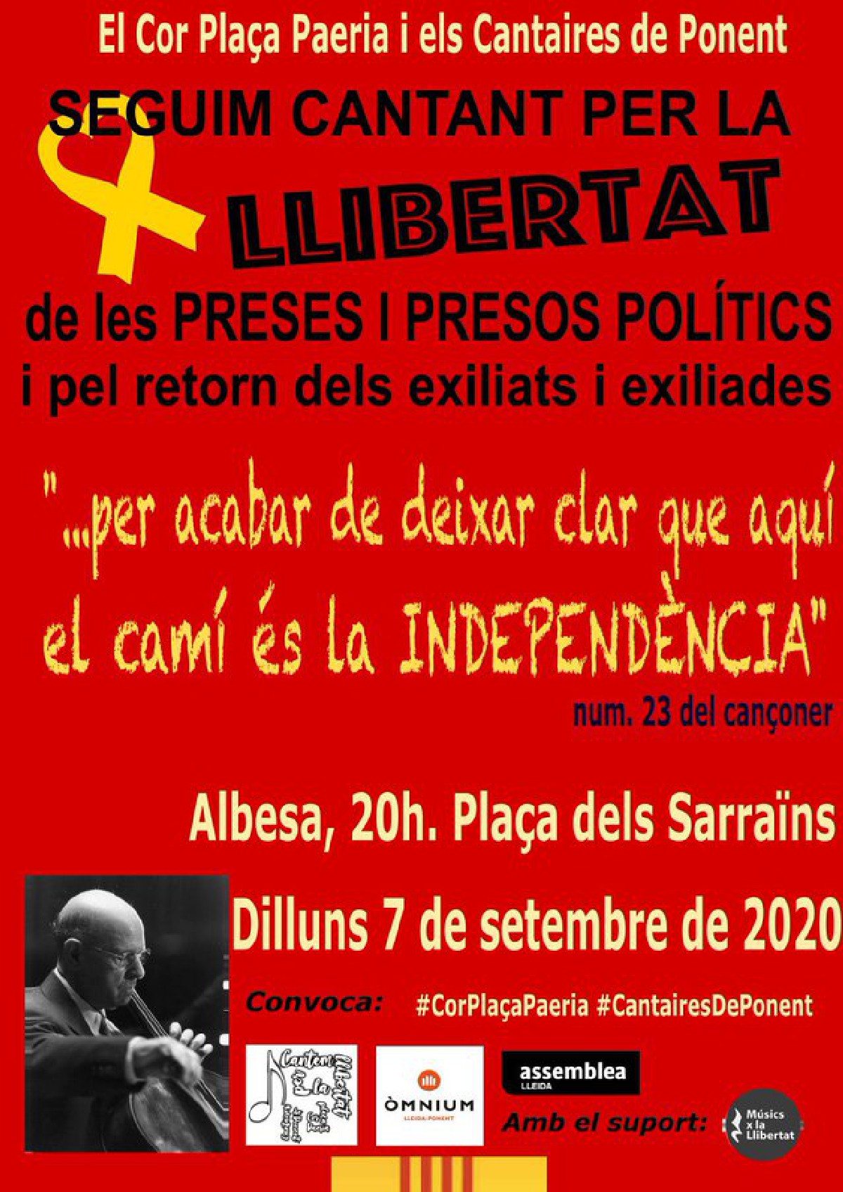 El Cor Plaça Paeria i els Cantaires de Ponent cantaran aquest dilluns a les 8 del vespre a la Plaça dels Sarraïns d'Albesa.