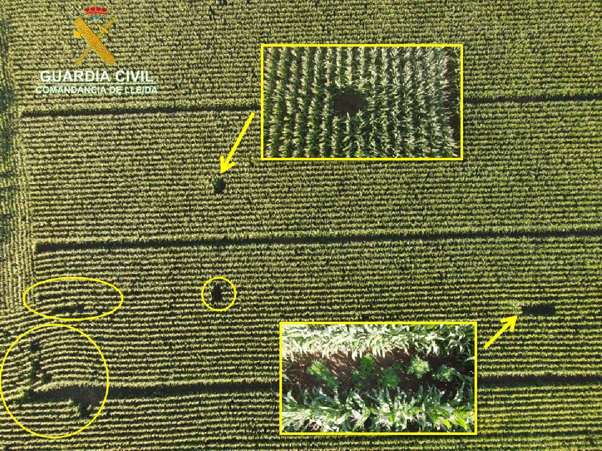 Localitzen 16 plantes de marihuana amagades entre cultiu de panís a la Noguera. La Guàrdia Civil està investigant qui podria ser-ne el responsable.