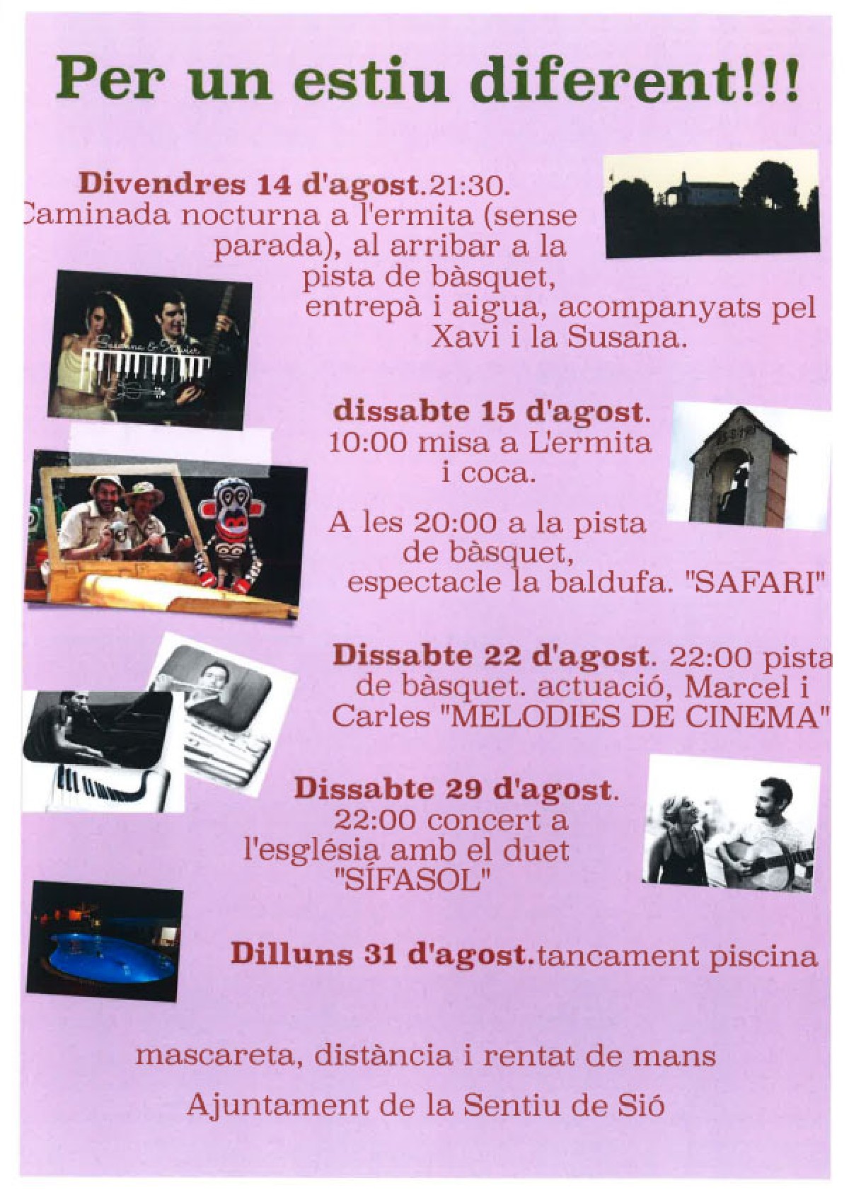 Aquest dissabte tindrà lloc a la Sentiu de Sió el concert 'Melodies de Cinema' a carrec dels músics Carles Fortuny i el Marcel Fabregat. L'activitat es realitzarà a les 10 de la nit a la pista de bàsquet.