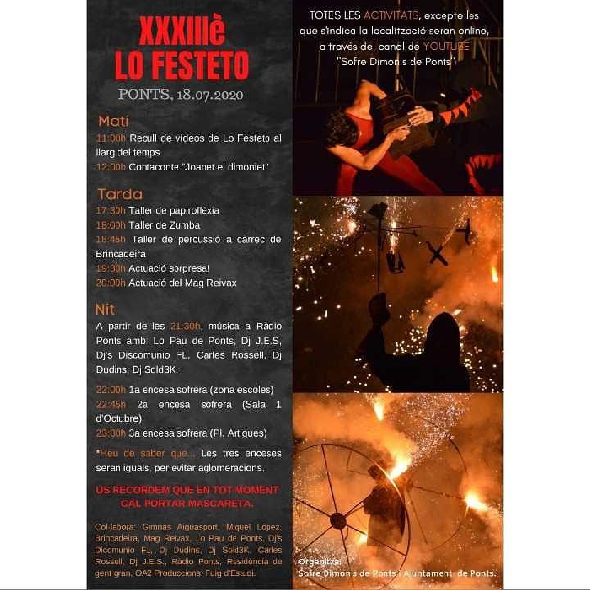 Ponts celebra aquest cap de setmana Lo Festeto 2020, la tradicional festa dels dimonis i el sofre que es fa cada any al juliol en aquesta localitat i que aquest any arriba a la seva 33a edició.