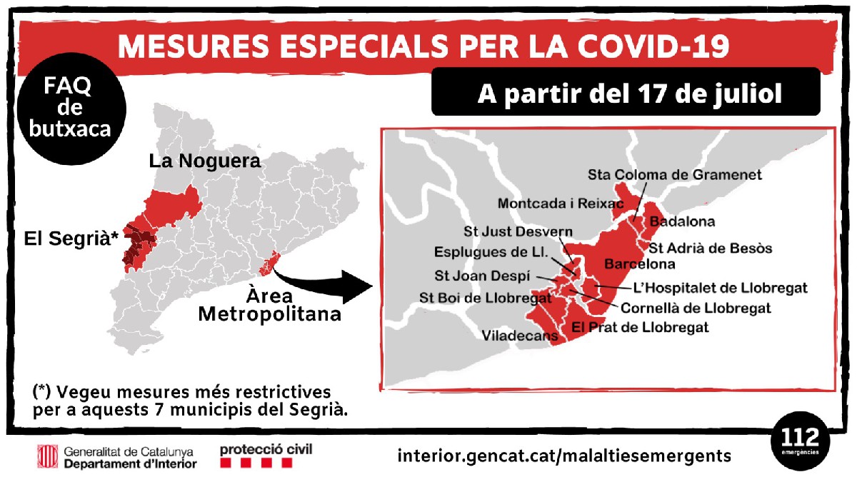 Actualització: El Govern estén a bona part de l'àrea metropolitana de Barcelona, la Noguera i la resta del Segrià les mesures contra la Covid-19 preses a l'Hospitalet de Llobregat