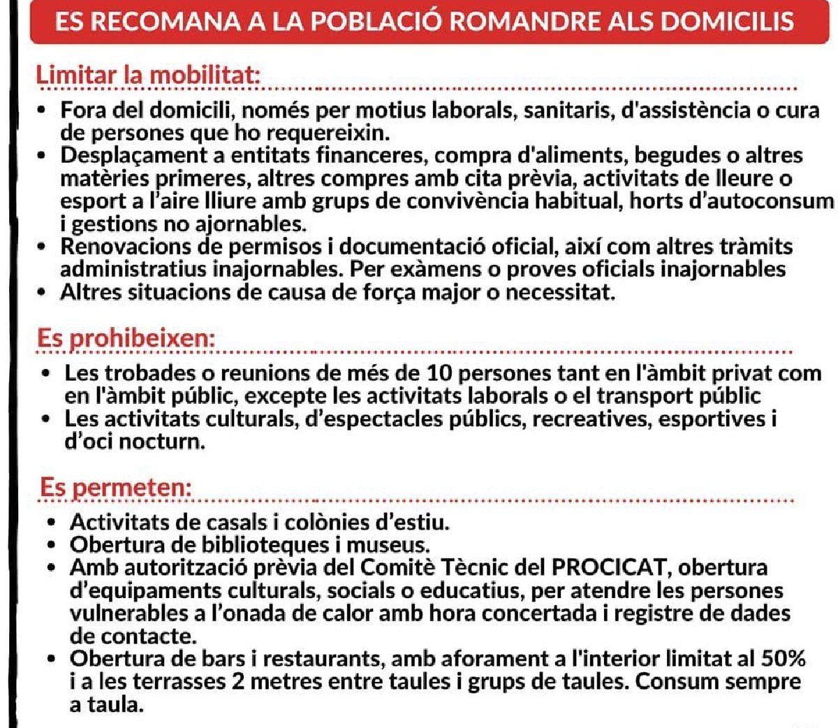Recomanacions i prohibicions pel Covid-19 a la Noguera