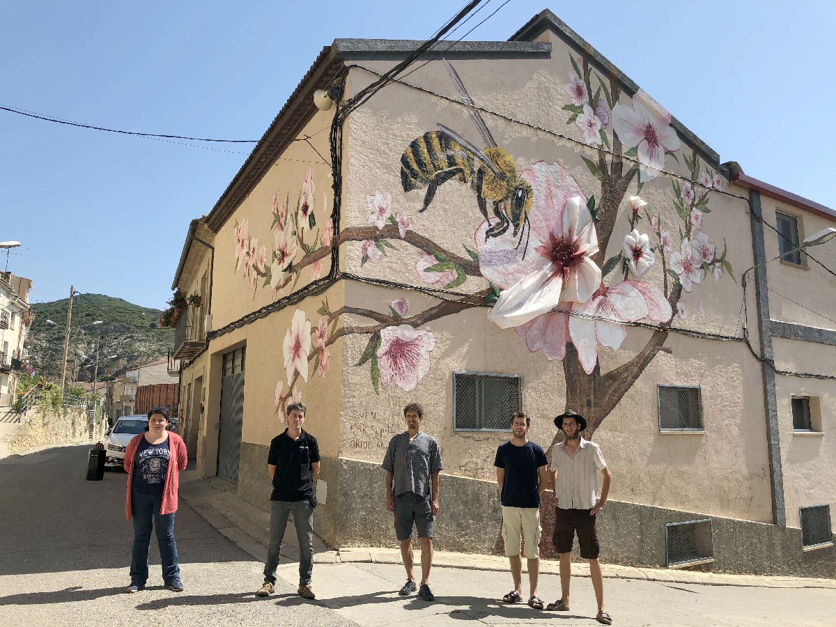 Os de Balaguer ha estrenat aquest dijous un mural de gran format en homenatge a la flor de l'ametller i les abelles. L'obra porta per títol 'Pol·linitzant l'ametller' i està pintat amb cera d'abella.