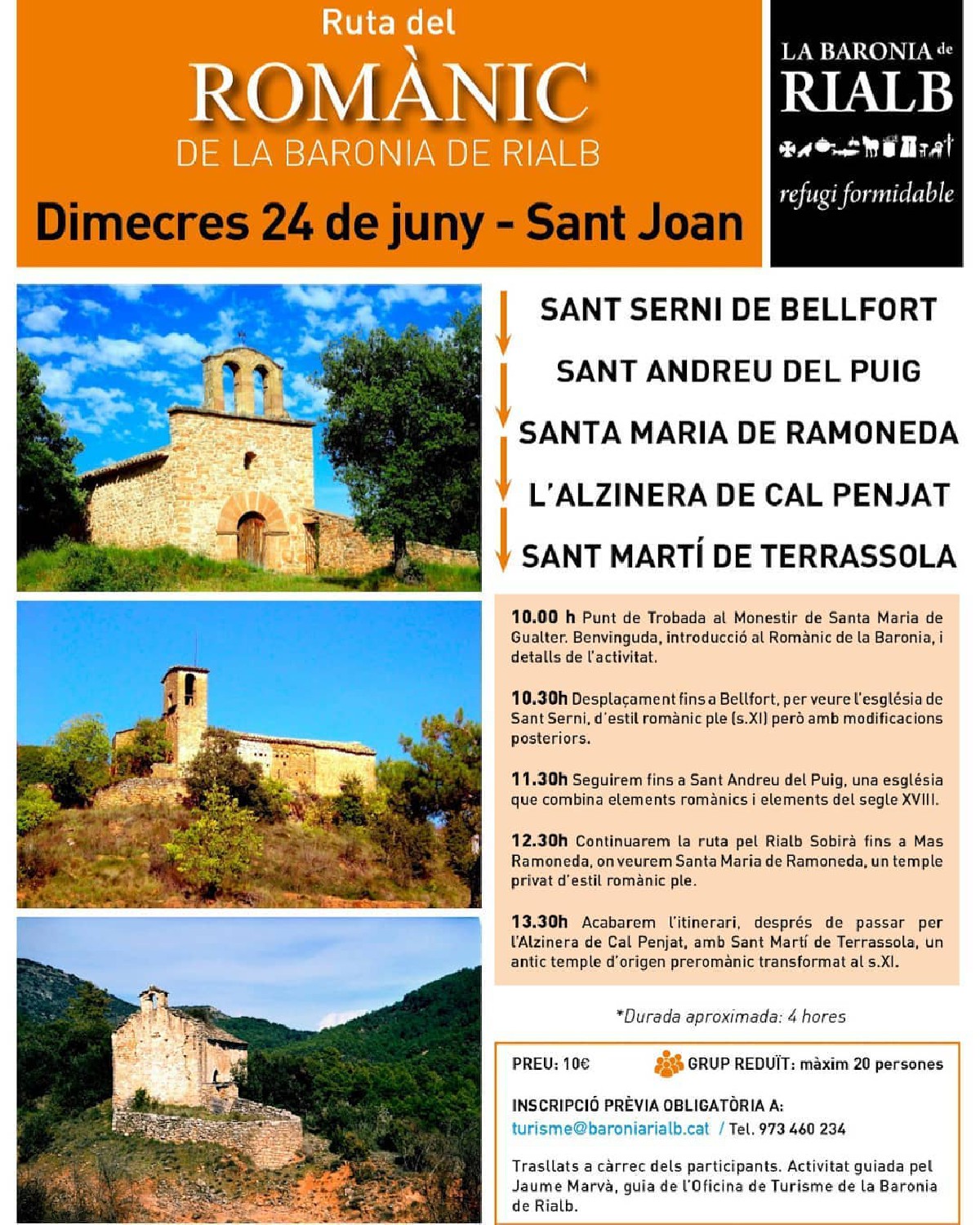 La Baronia de Rialb ofereix fer la Ruta del romànic per celebrar Sant Joan. Aquest dimecres de 10 a 2 del migdia proposa la visita a 4 dels construccions més representatives d'aquesta època a la zona.