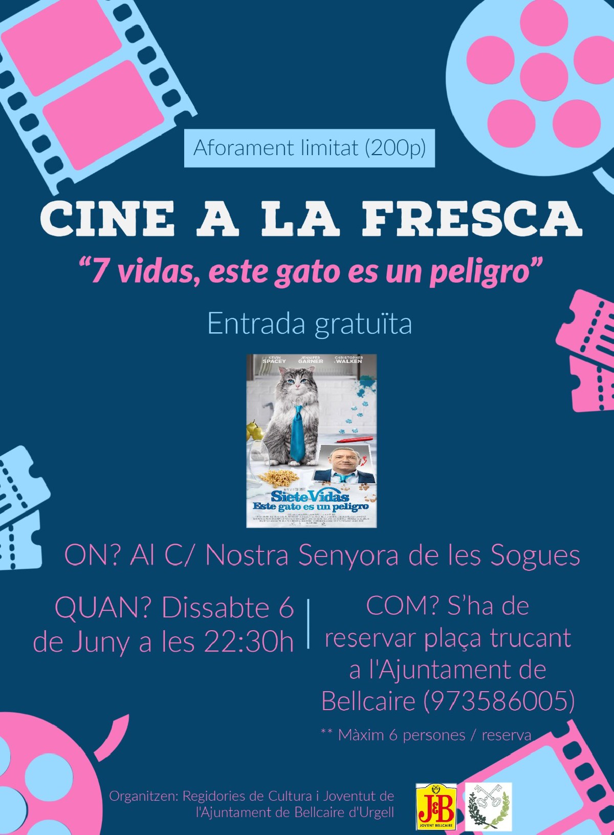 Bellcaire prepara una sessió de cinema a la fresca per aquest dissabte 6 de juny. Es projectarà gratuïtament la pel·lícula familiar 'Siete vidas, este gato es un peligro', però cal reserva prèvia per assistir-hi.
