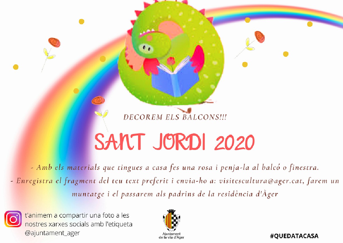 Àger proposa als seus veïns per Sant Jordi fer una rosa amb materials que es tinguin a casa i posar-la al balcó o finestra, a més d'enregistrar un fragment de lectura per projectar-lo als avis de la residència.