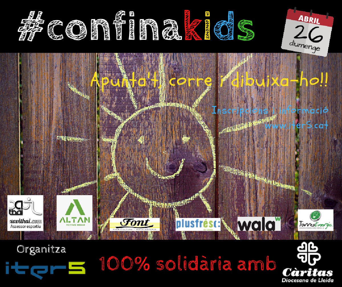 LA #CONFINAKIDS, nova proposta esportiva i 100% solidària d'Iter5 adreçada als més petits i amb Càritas Lleida com a beneficiària. Se celebrarà diumenge vinent amb l'esport i el dibuix com a eixos i amb el suport de diferents empreses i cases comercials.