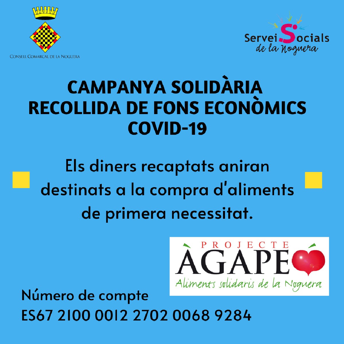 L'emergència social mobilitza la solidaritat a la Noguera. El Consell Comarcal de la Noguera obre un número de compte solidari davant les propostes de donacions en metàl·lic.