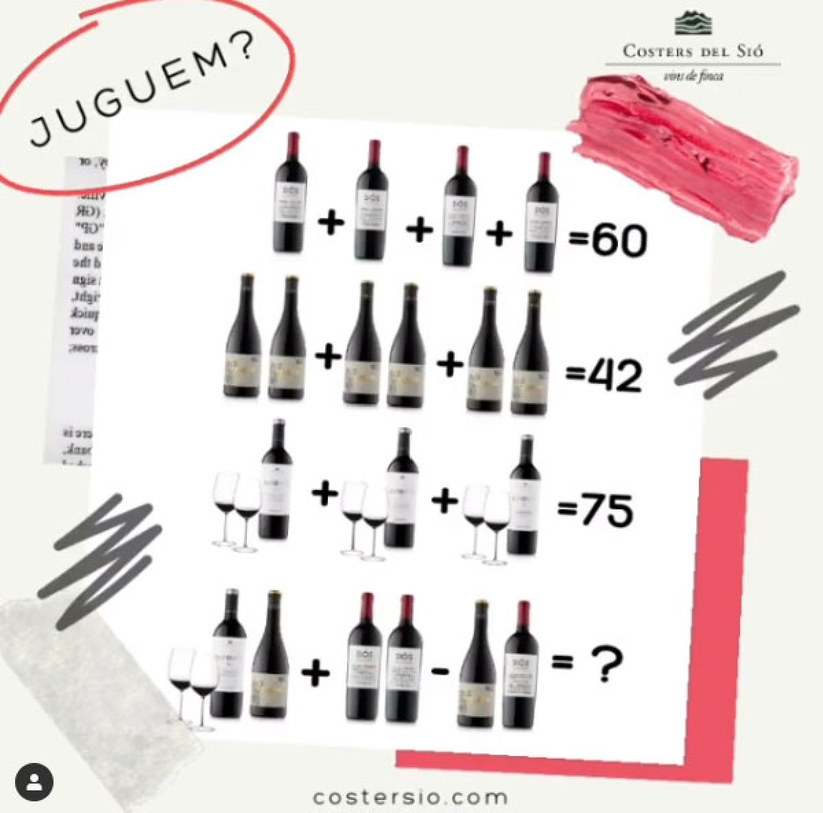 Costers del Sió proposa aquests dies un joc matemàtic al seu Instagram, per guanyar un ampolla de Siós Nature, un dels seus nous vins, encara no a la venda.