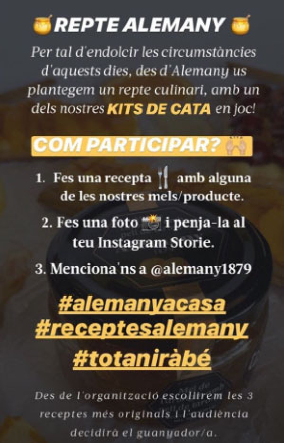 Torrons i Mel Alemany d'Os de Balaguer proposa als seus seguidors un repte culinari mitjançant les xarxes socials, amb l'oportunitat de guanyar un kit de cata.