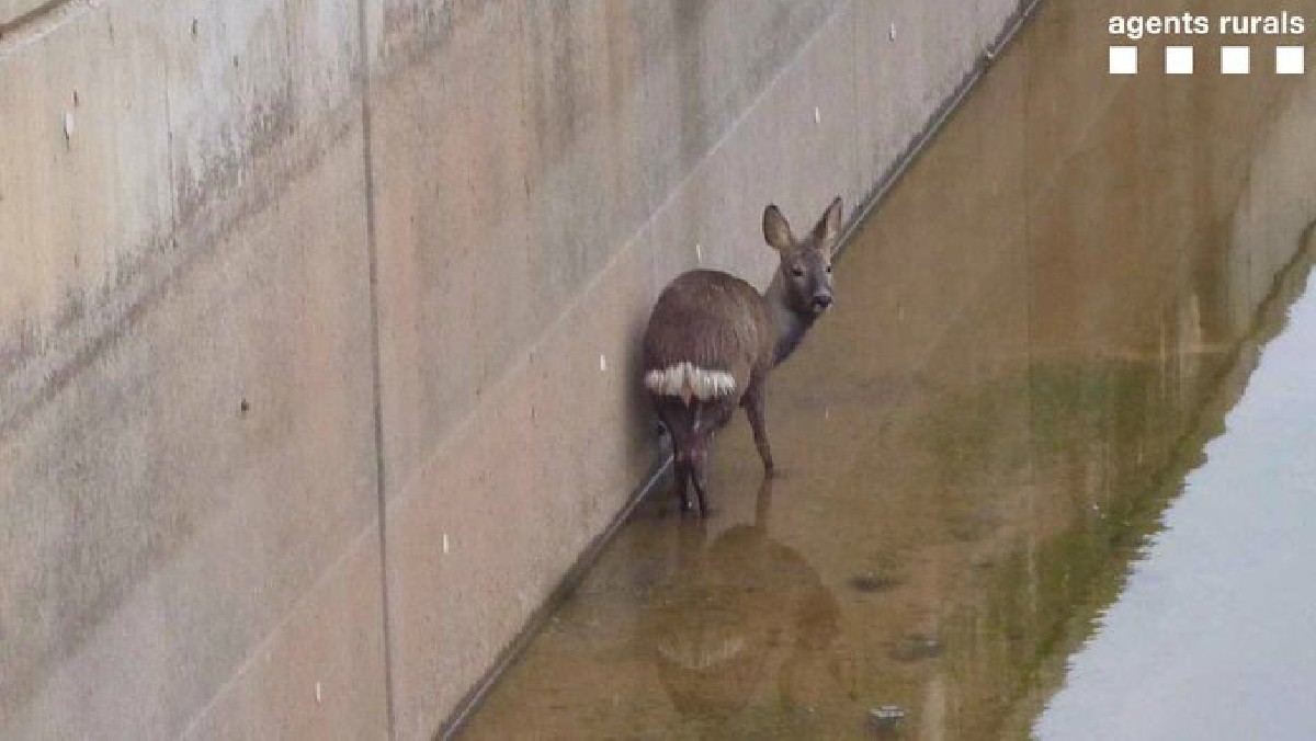 El Agents Rurals rescaten un cabirol al Canal Algerri-Balaguer. Després de rescatar l'animal i comprova que no tenia cap lesió greu l'han retornat al medi natural.