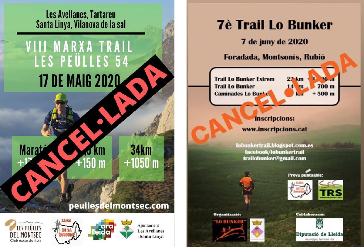 La VIII Marxa Trail Les Peülles del Montsec, que s'havia de celebrar el 17 de maig es cancel·la definitivament. També cau del calendari esportiu el 7è Trail Lo Bunker, previst pel 7 de juny a Foradada.