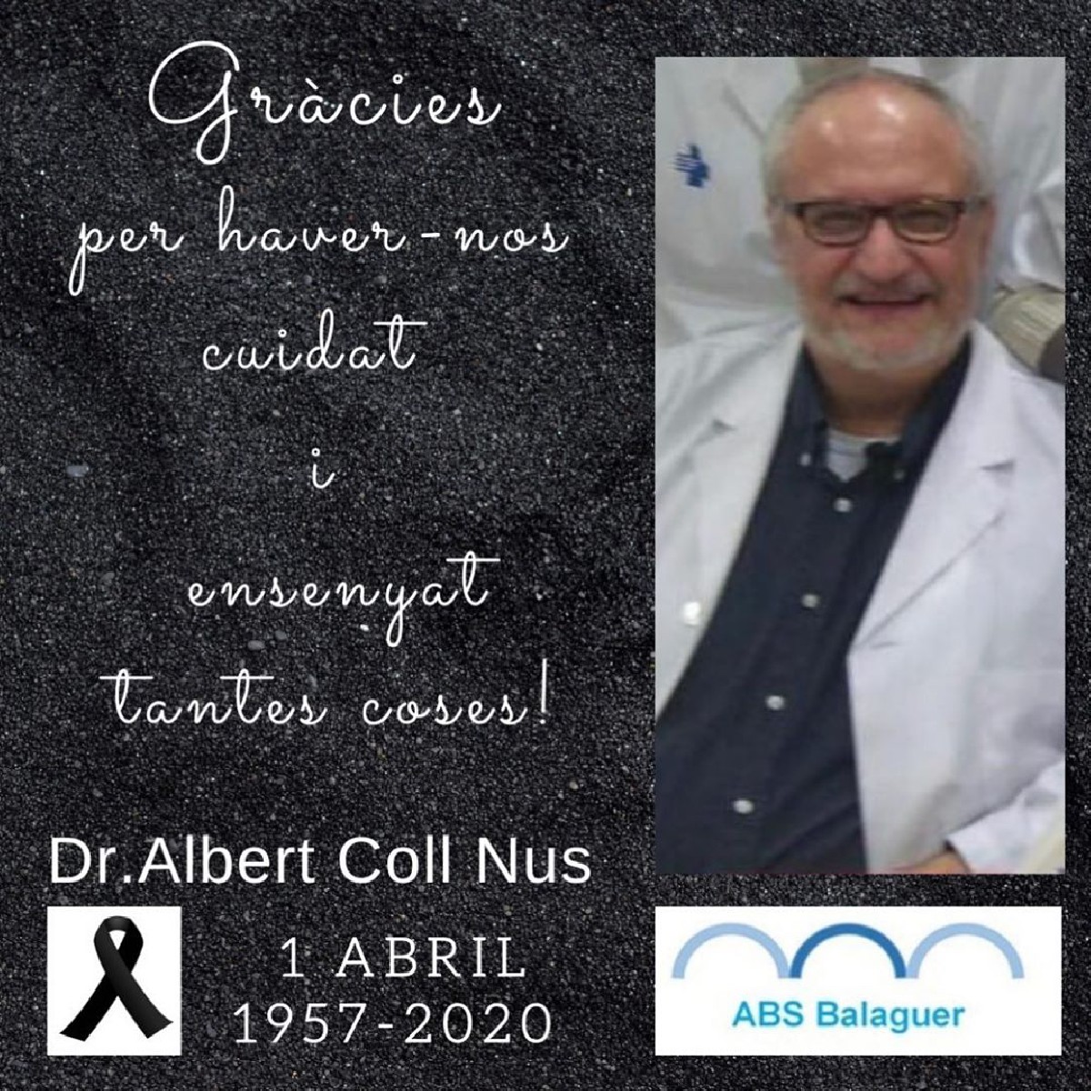 Primera mort d'un metge per coronavirus a Lleida. El doctor Albert Coll, de 63 anys, que exercia de metge de família a Os de Balaguer, Castelló de Farfanya i Àger
