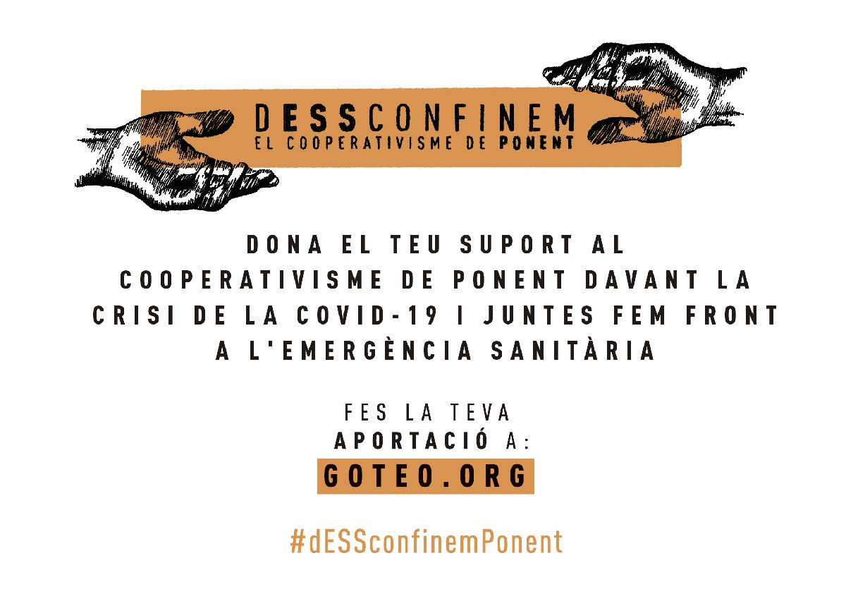 Ponent Coopera llança una campanya de micromecenatge de suport al teixit cooperatiu davant la crisi del coronavirus. La iniciativa #dESSconfinemPonent destinarà el 10% de les donacions a l'Hospital Arnau de Vilanova de Lleida