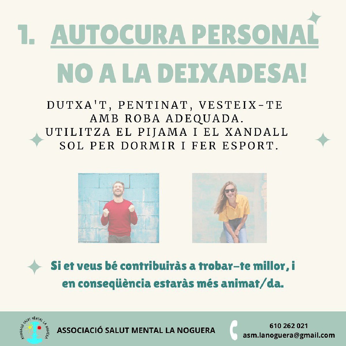 L'Associació de Salut Mental La Noguera publica una guia amb 10 eines pràctiques per tenir cura de la salut mental mentre dura el confinament.