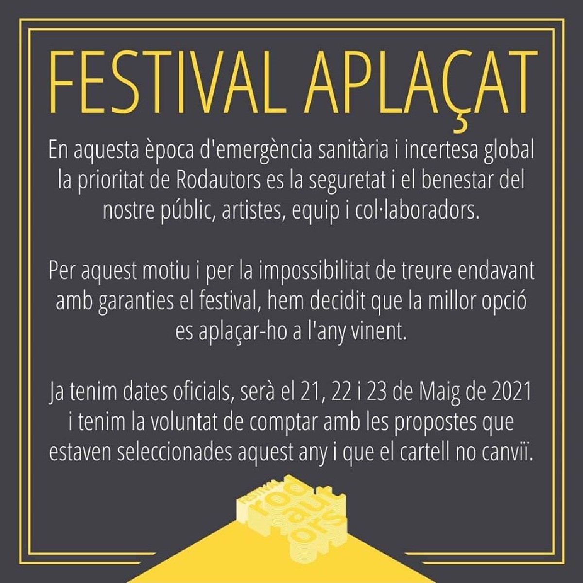 El Festival Rodautors que s'havia de celebrar a Os de Balaguer, s'aplaça definitivament per als dies 21, 22 i 23 de maig de l'any 2021.