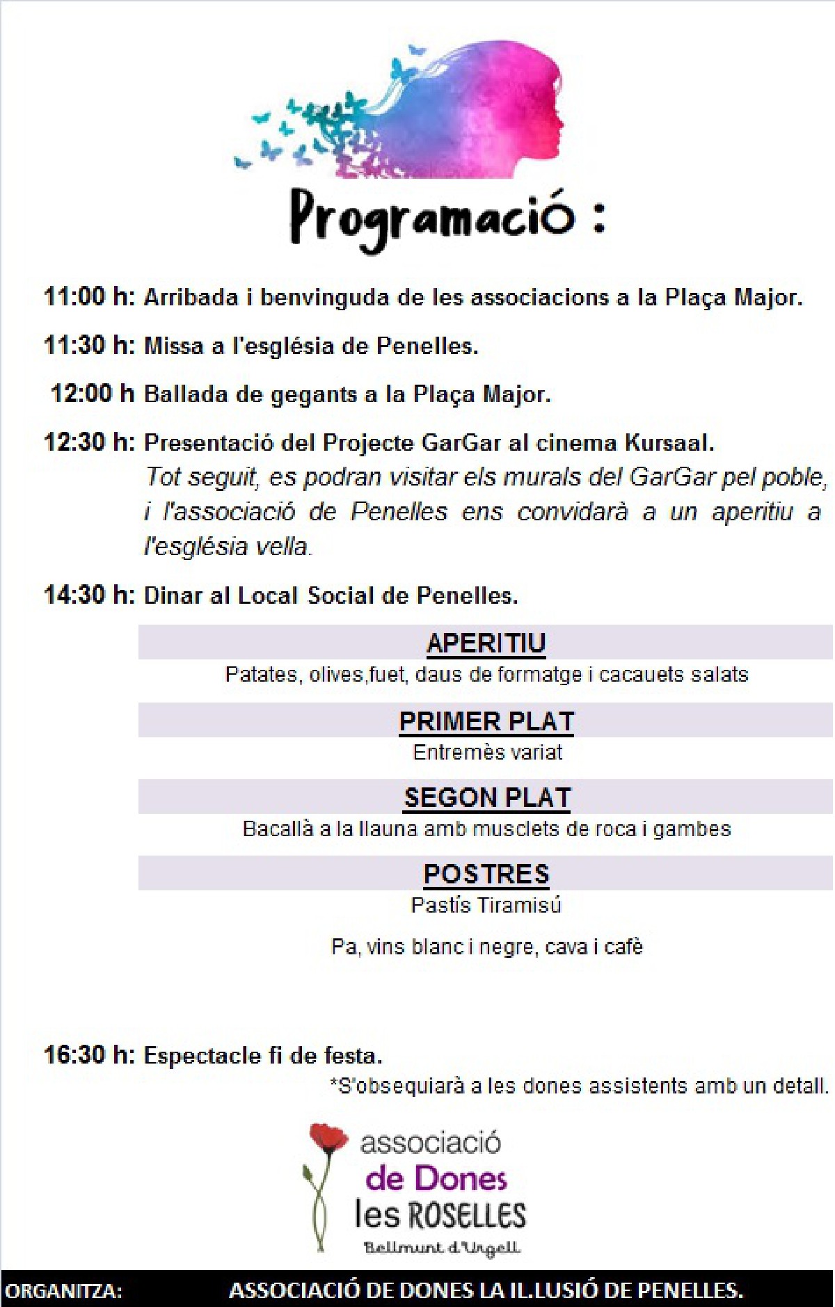 Penelles té a punt el programa de la XXI Trobada de dones de la Noguera. Es farà el diumenge 29 de març i l'organitzarà l'Associació de Dones les Roselles.