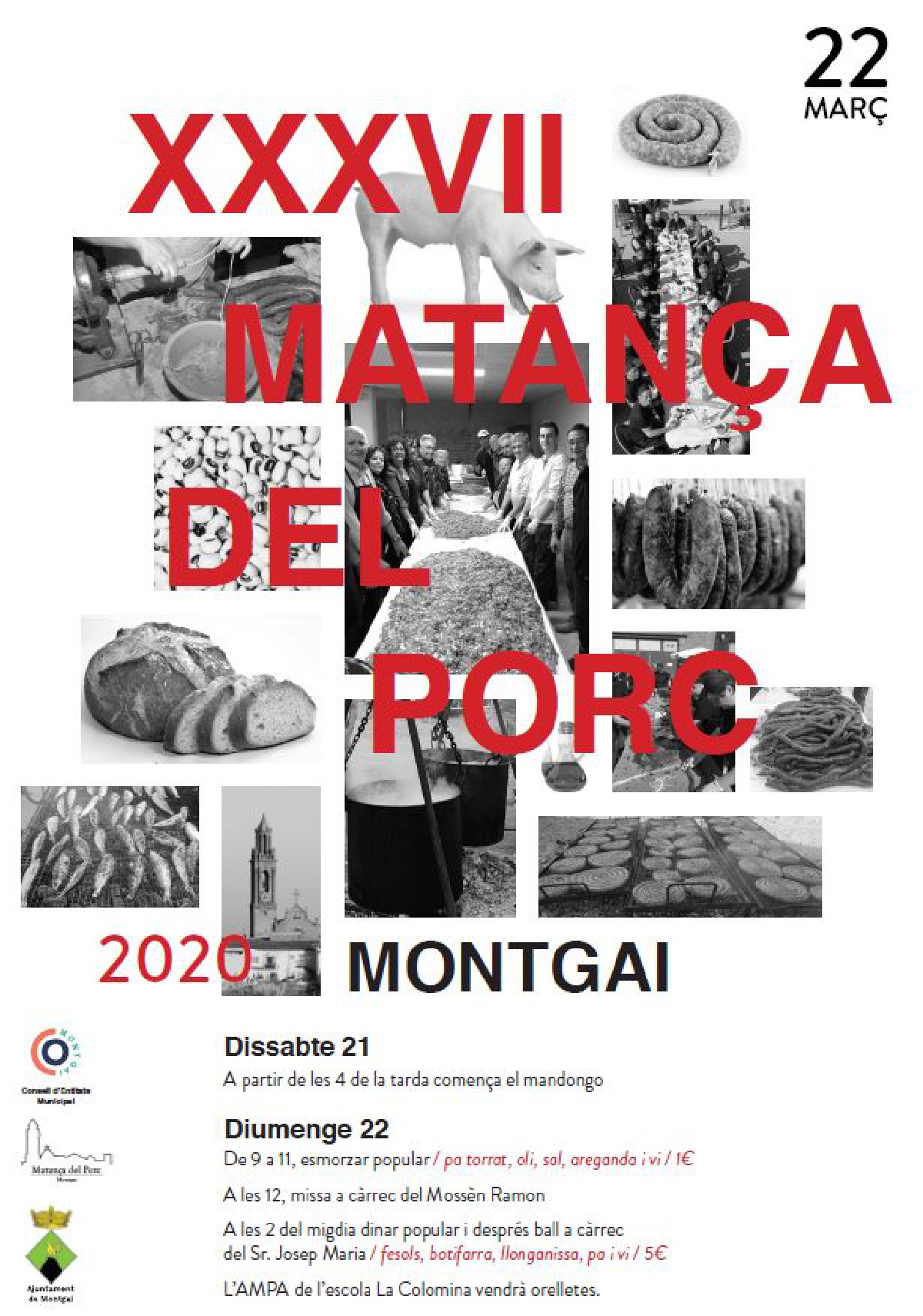 Montgai prepara la 37a edició de la Matança del Porc per al proper diumenge 22 de març. Una setmana abans, el dia 15, es farà la IX Porcada a Butsènit d'Urgell.